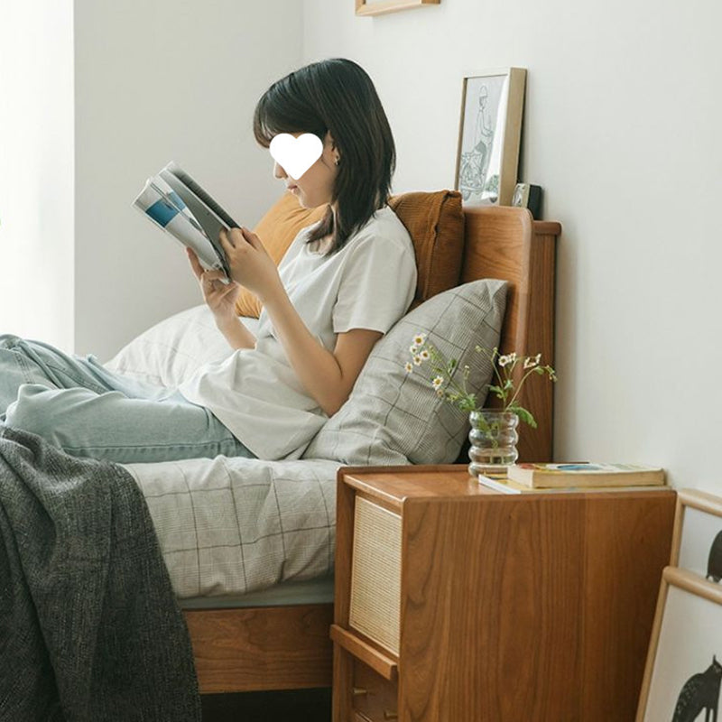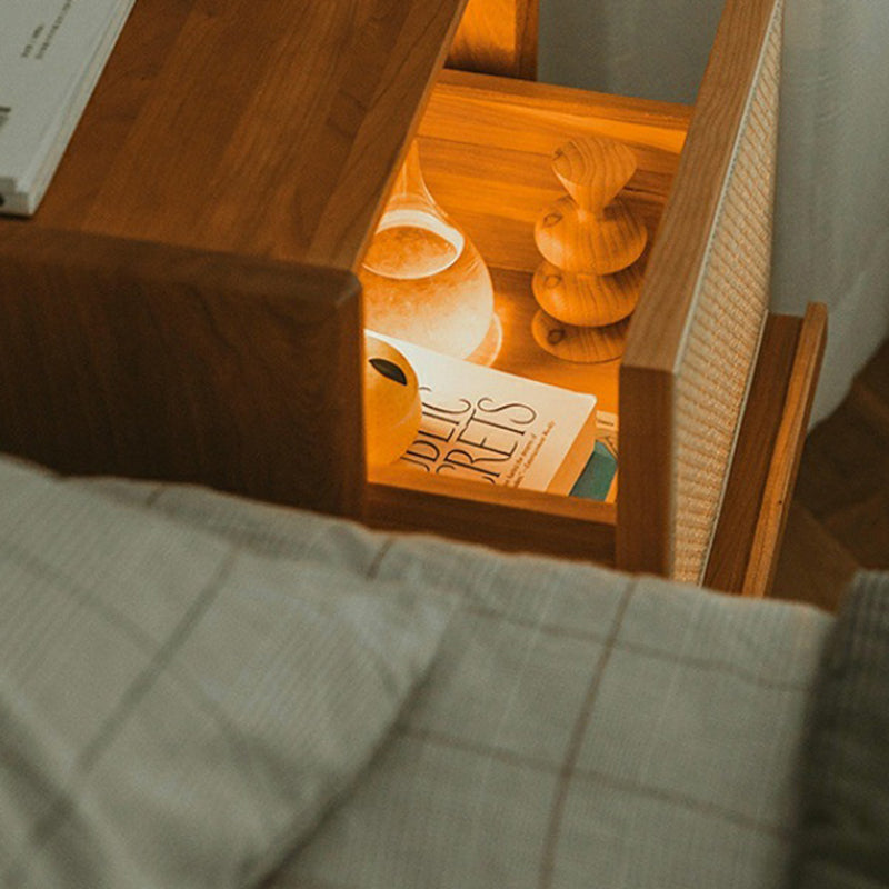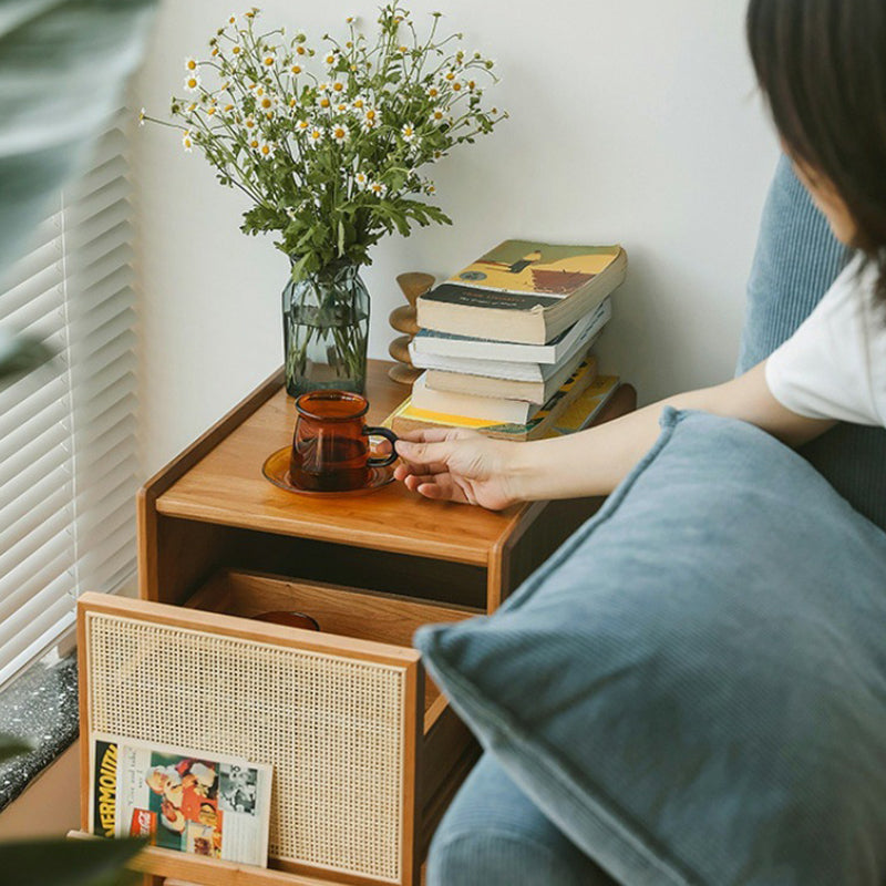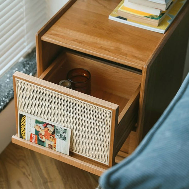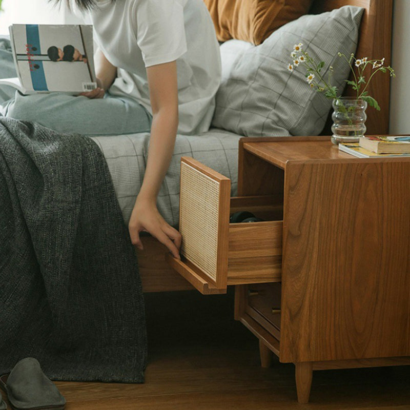 Traditional Vintage Rectangular Solid Wood Rattan Nightstand 2-Drawer For Bedroom
