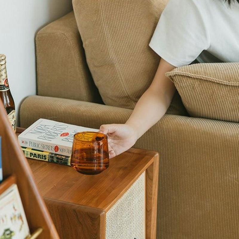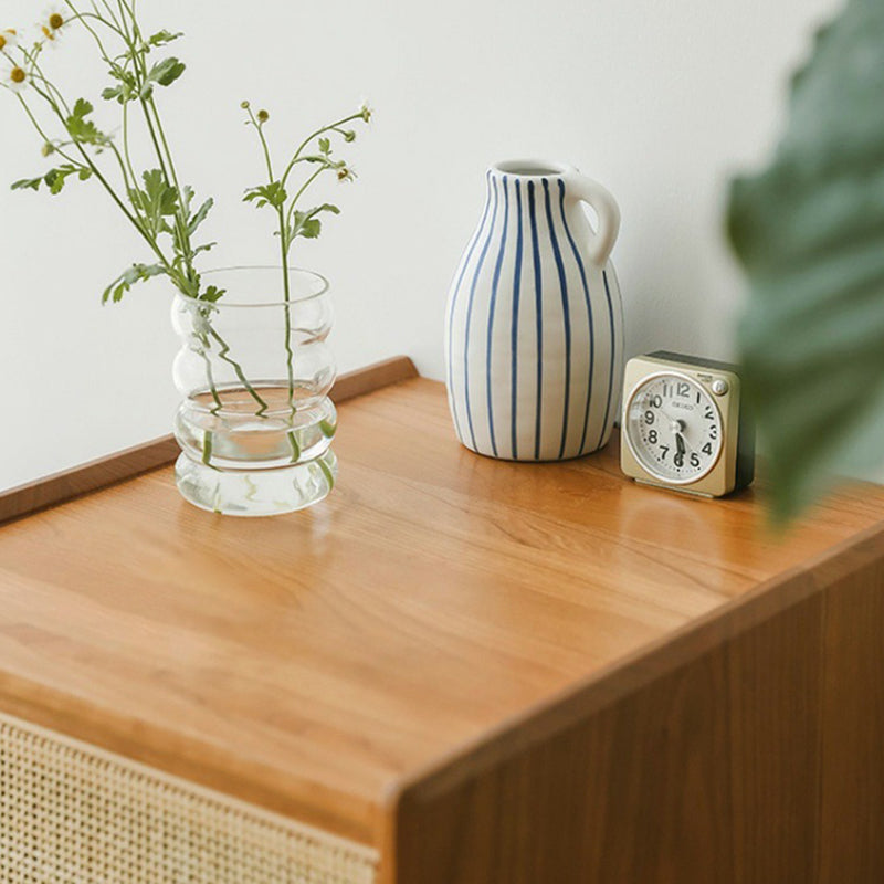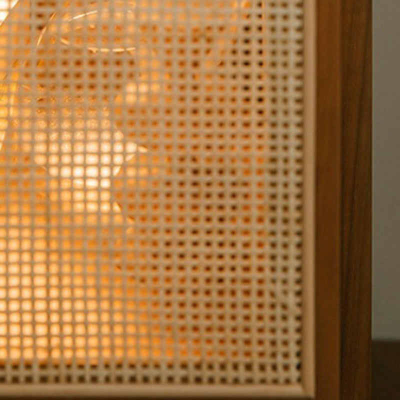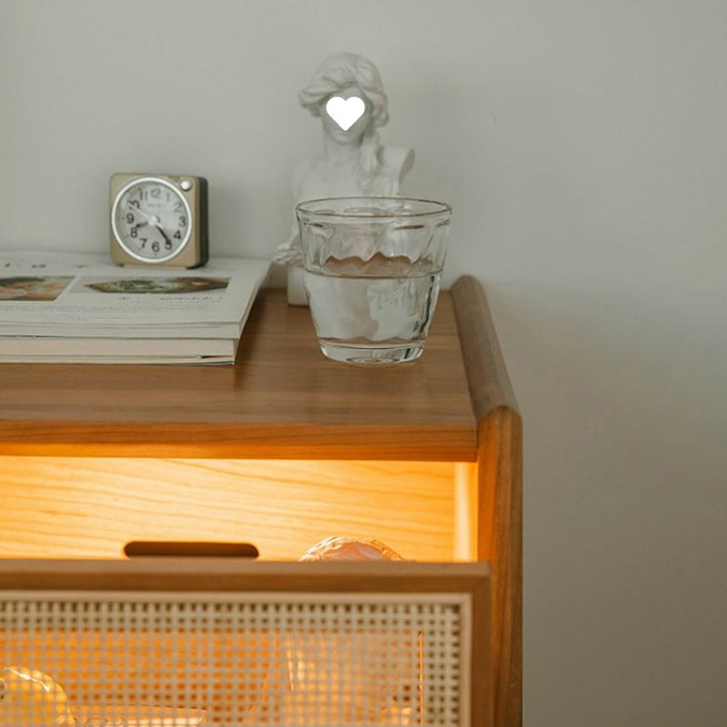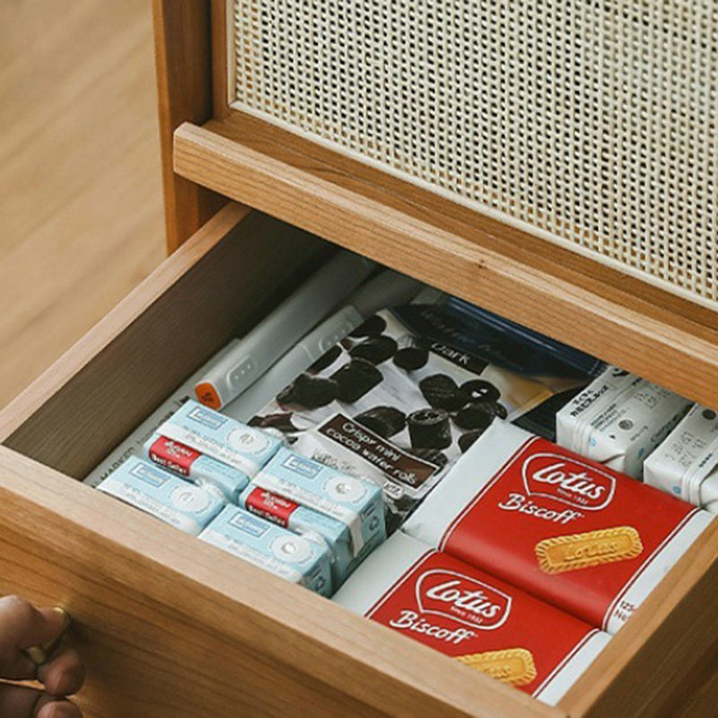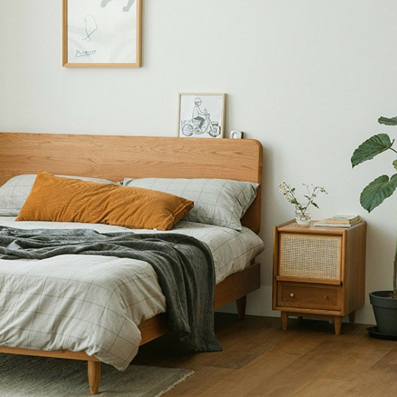 Traditional Vintage Rectangular Solid Wood Rattan Nightstand 2-Drawer For Bedroom