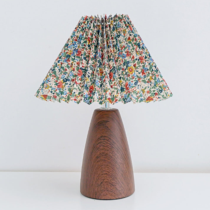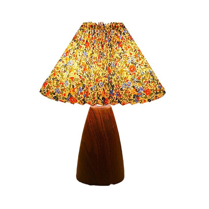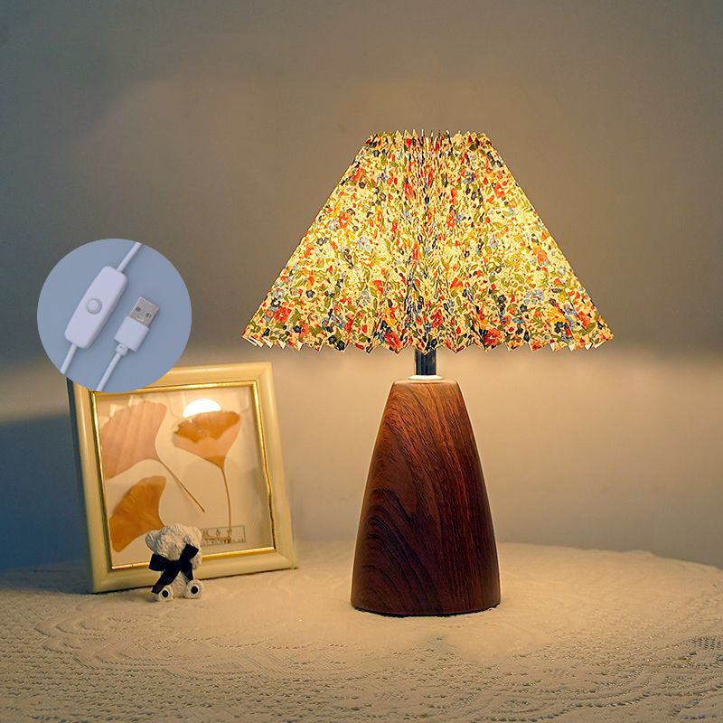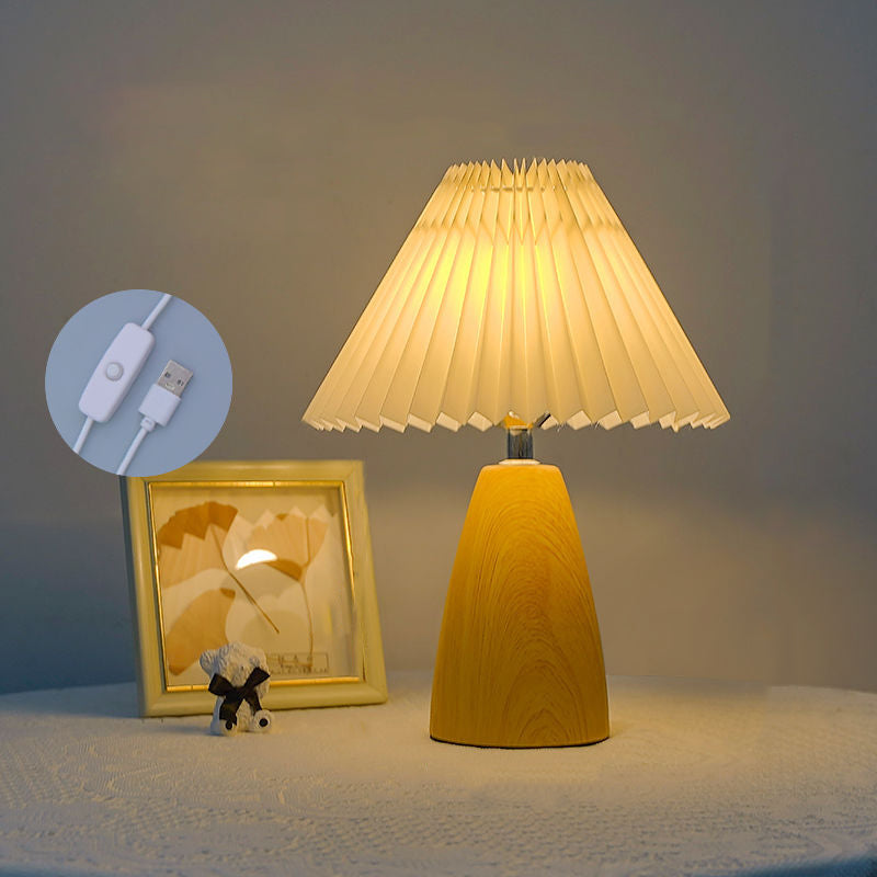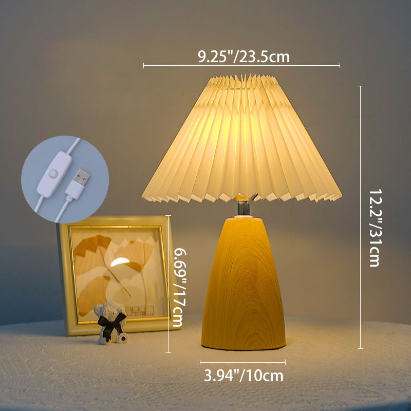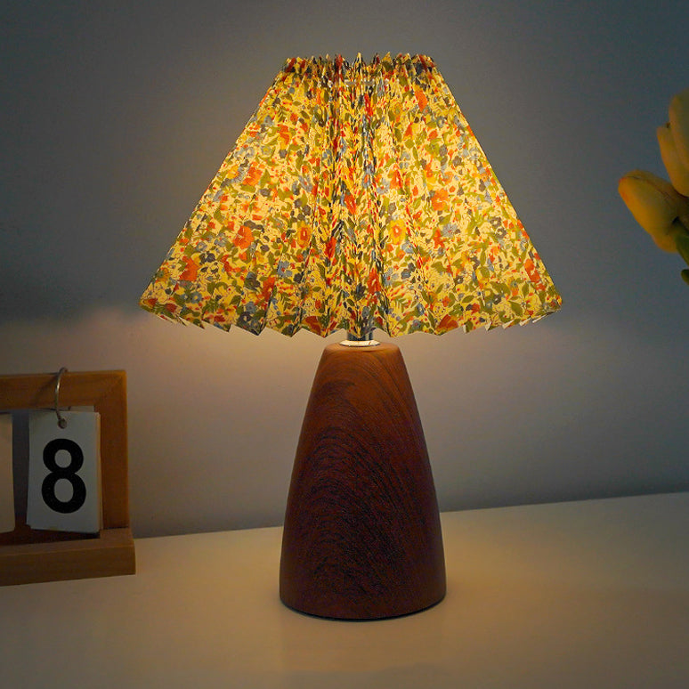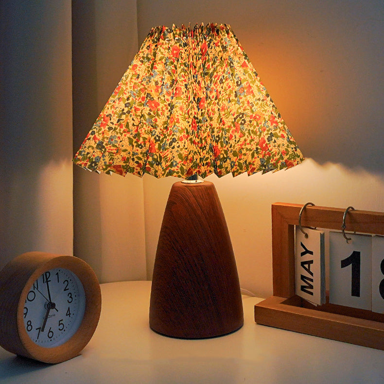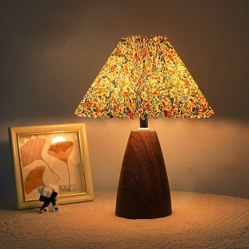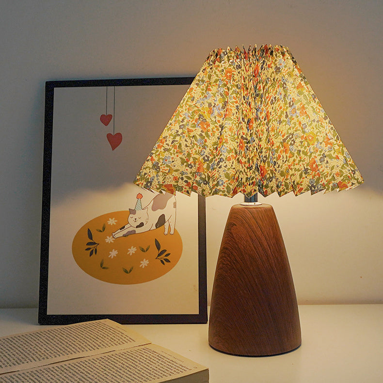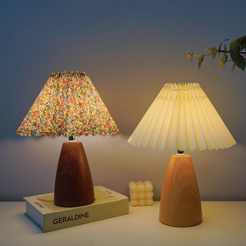Traditional Vintage Scalloped Pleated Cone Fabric Wood LED Table Lamp For Living Room