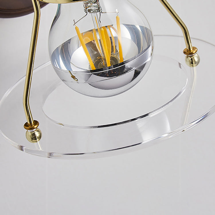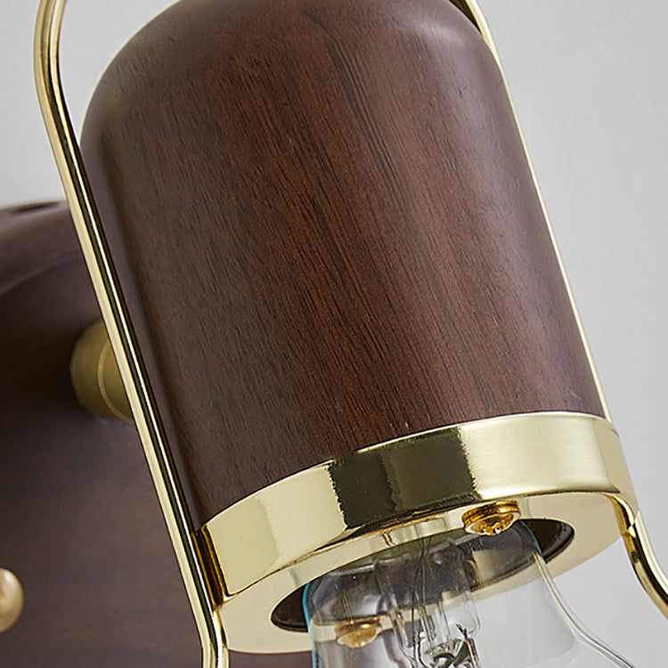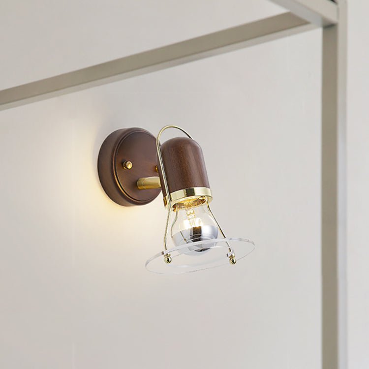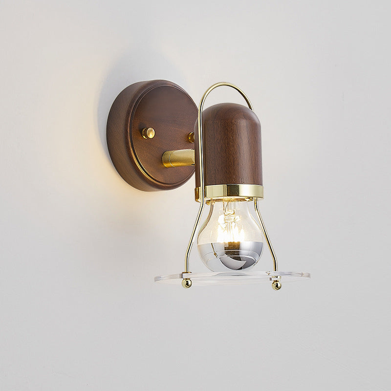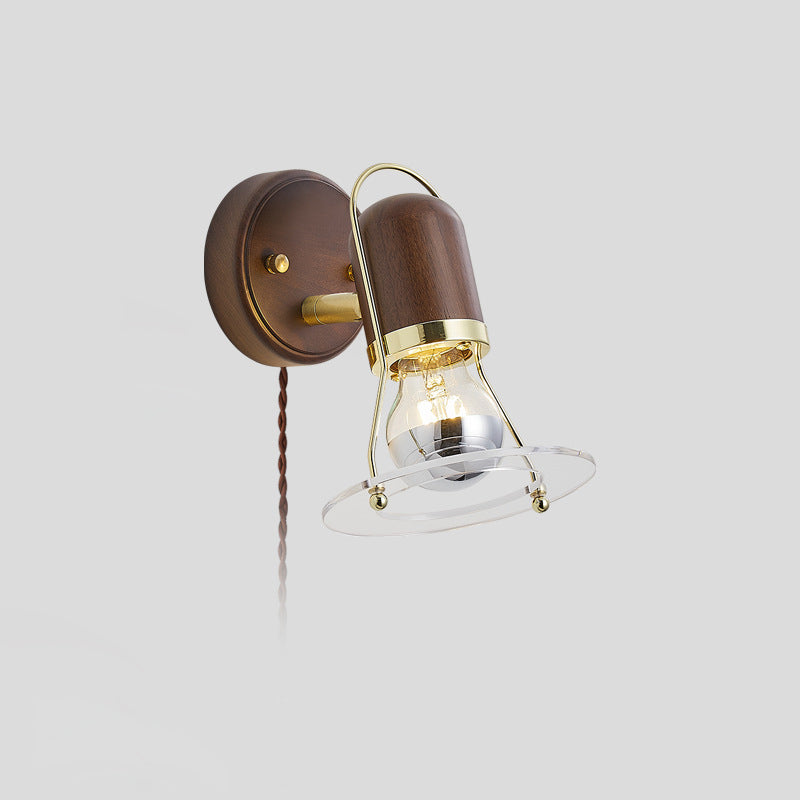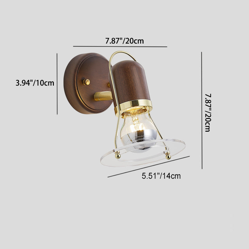 مصباح حائطي تقليدي عتيق من خشب الجوز على شكل أسطوانة دائرية من الأكريليك مزود بإضاءة واحدة لوضعه بجانب السرير