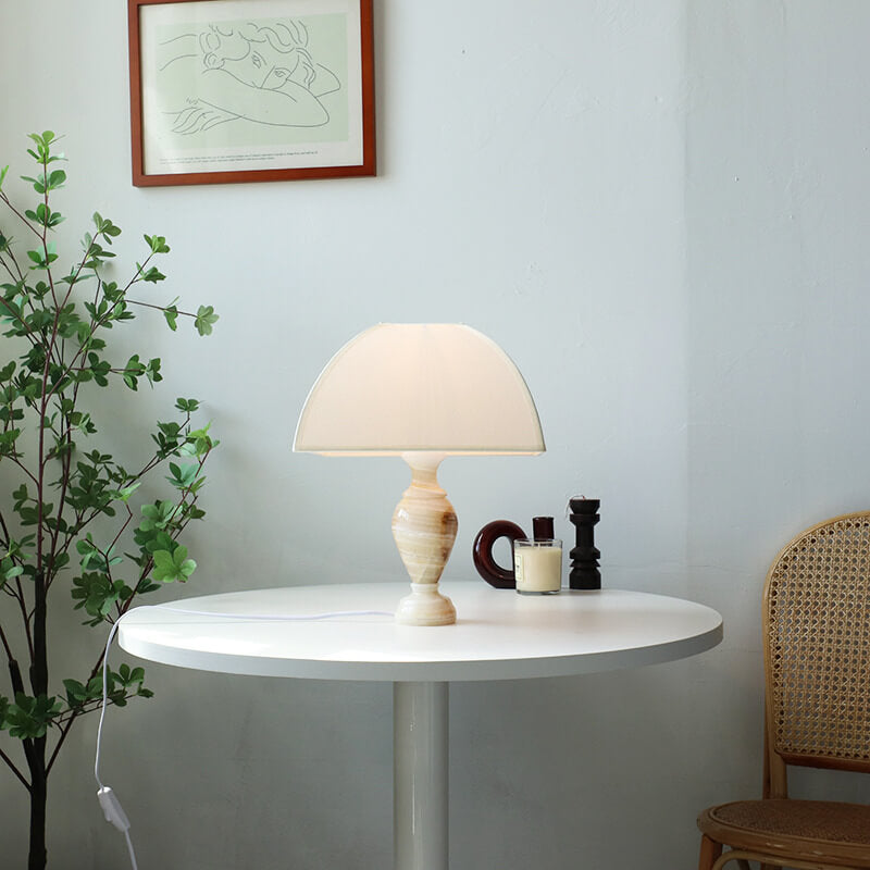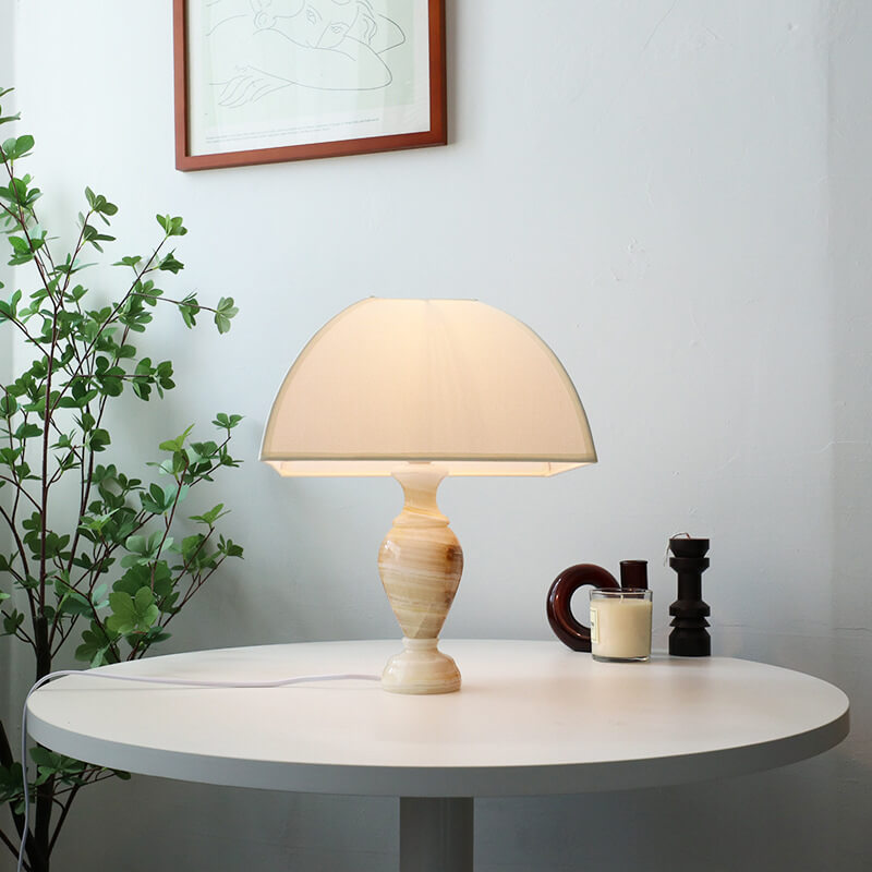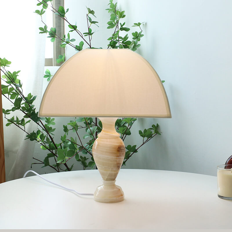 Vintage French Cone Fabric Jade Base 1-Light Table Lamp