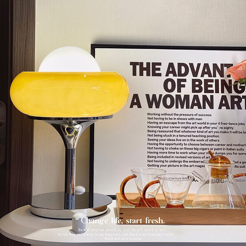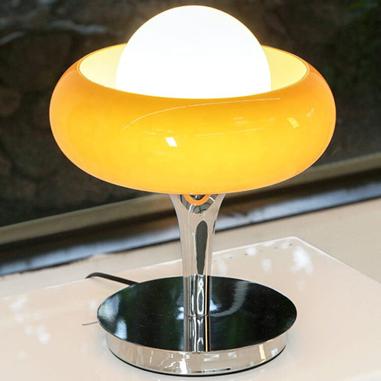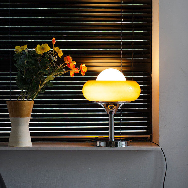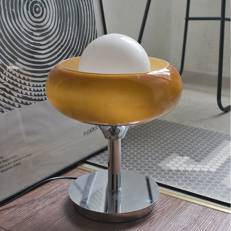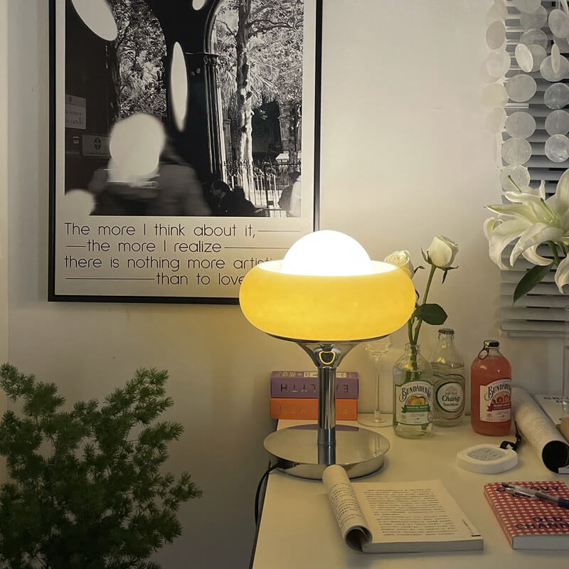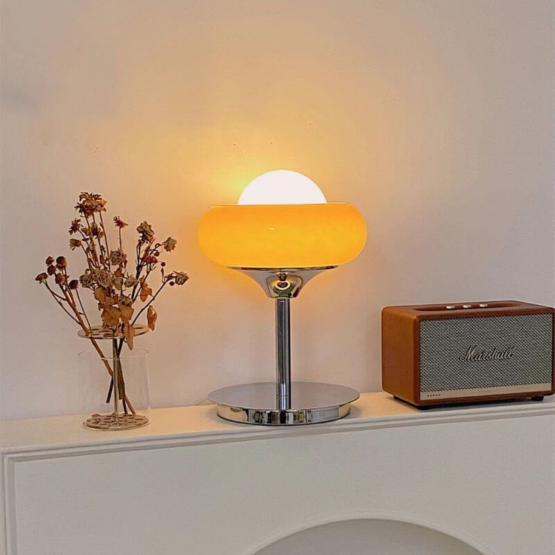 Vintage Glass Egg Tart Iron Base 1-Light Table Lamp