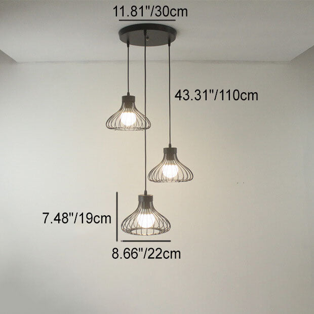 ثريا جزيرة عتيقة صناعية سوداء بيضاوية الشكل مجوفة بإضاءة 1/3