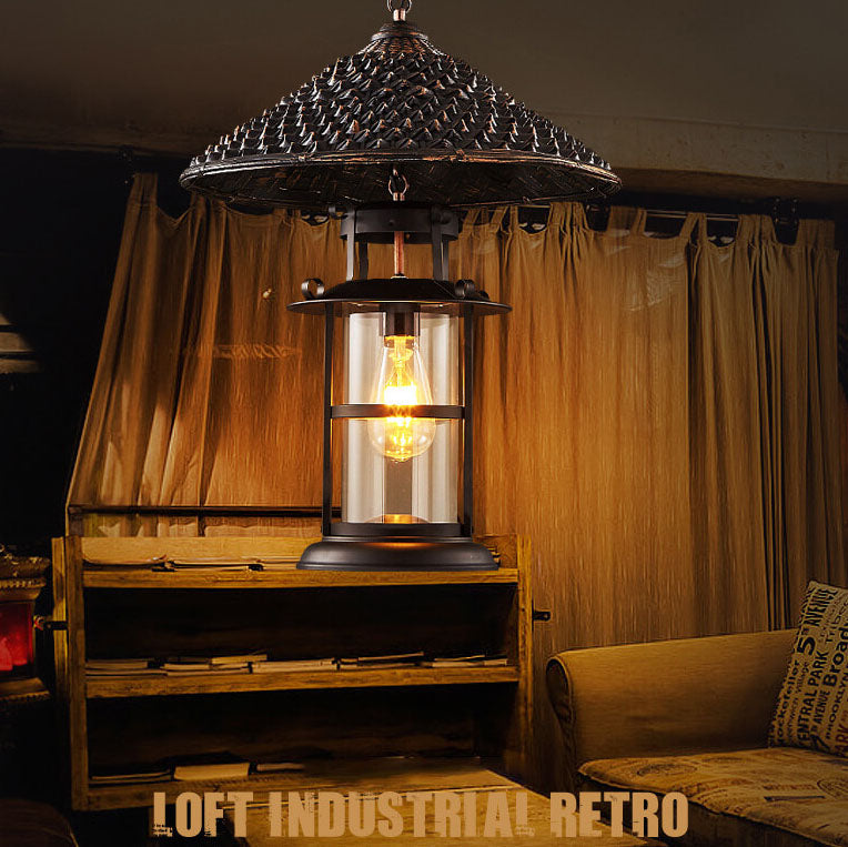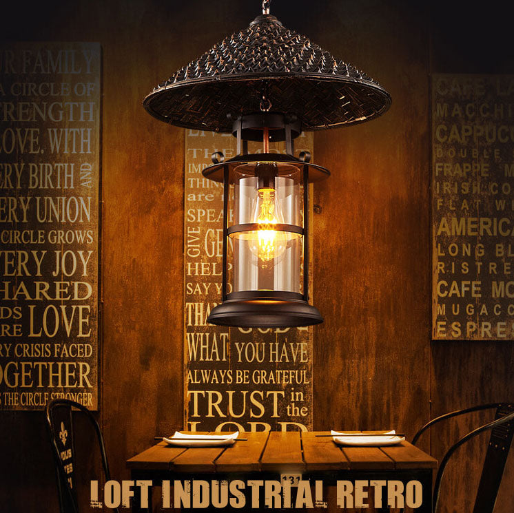 فانوس قبعة دلو صناعي عتيق، مصباح معلق واحد