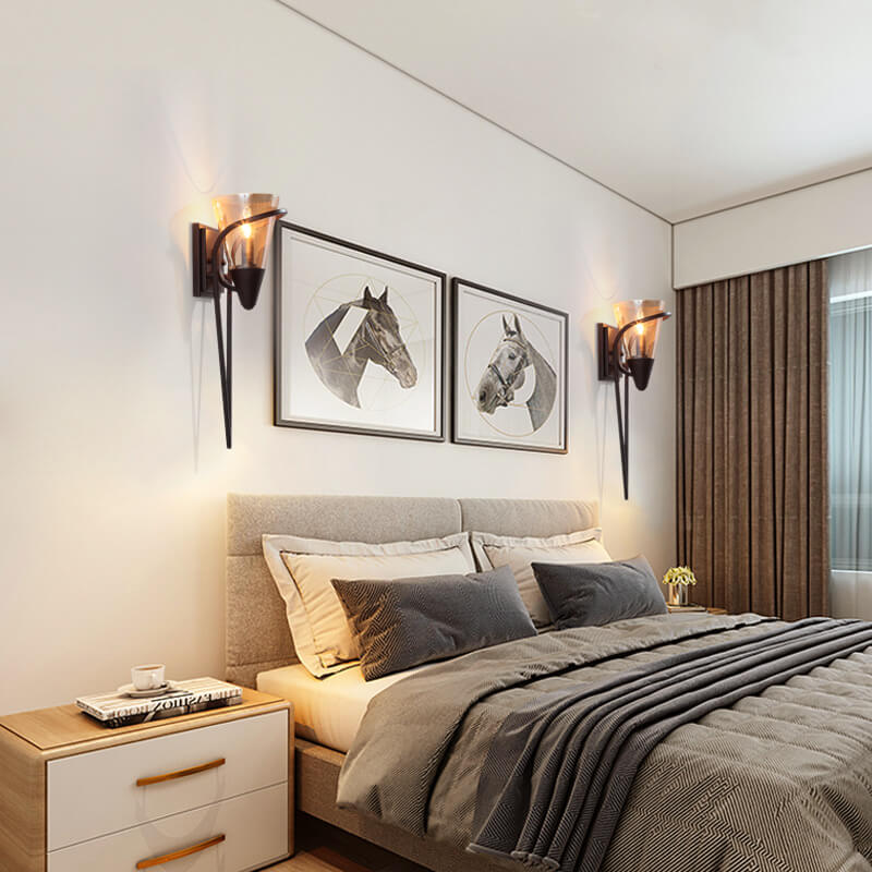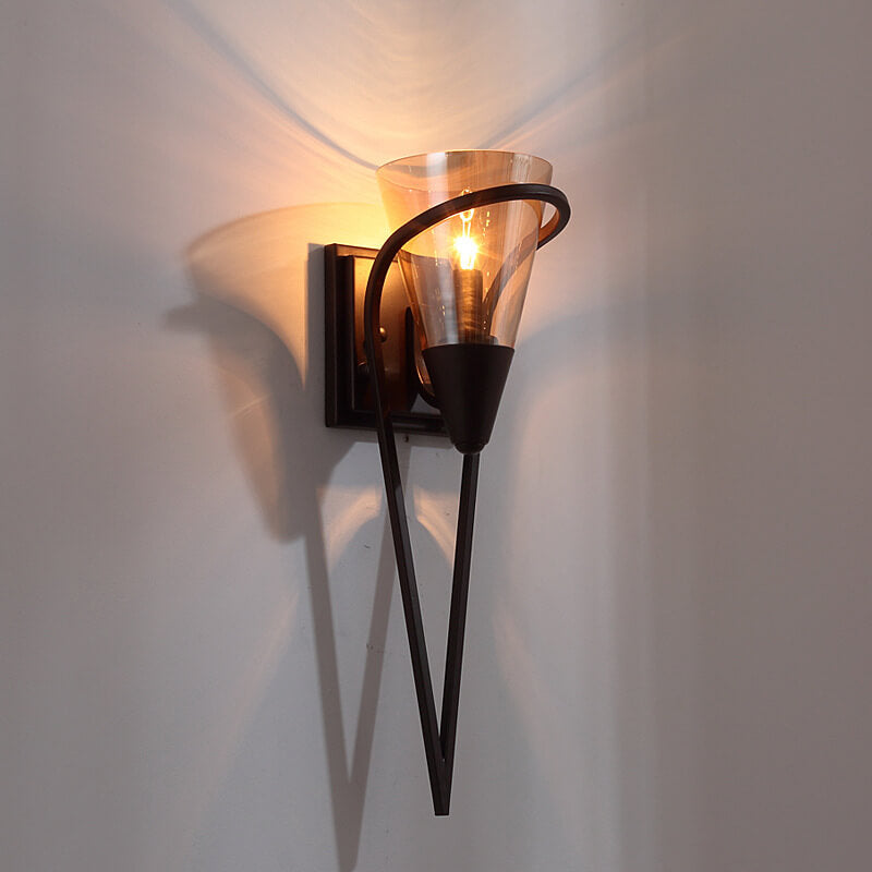 مصباح حائط مخروطي عتيق من الحديد الزجاجي الصناعي مزود بإضاءة واحدة
