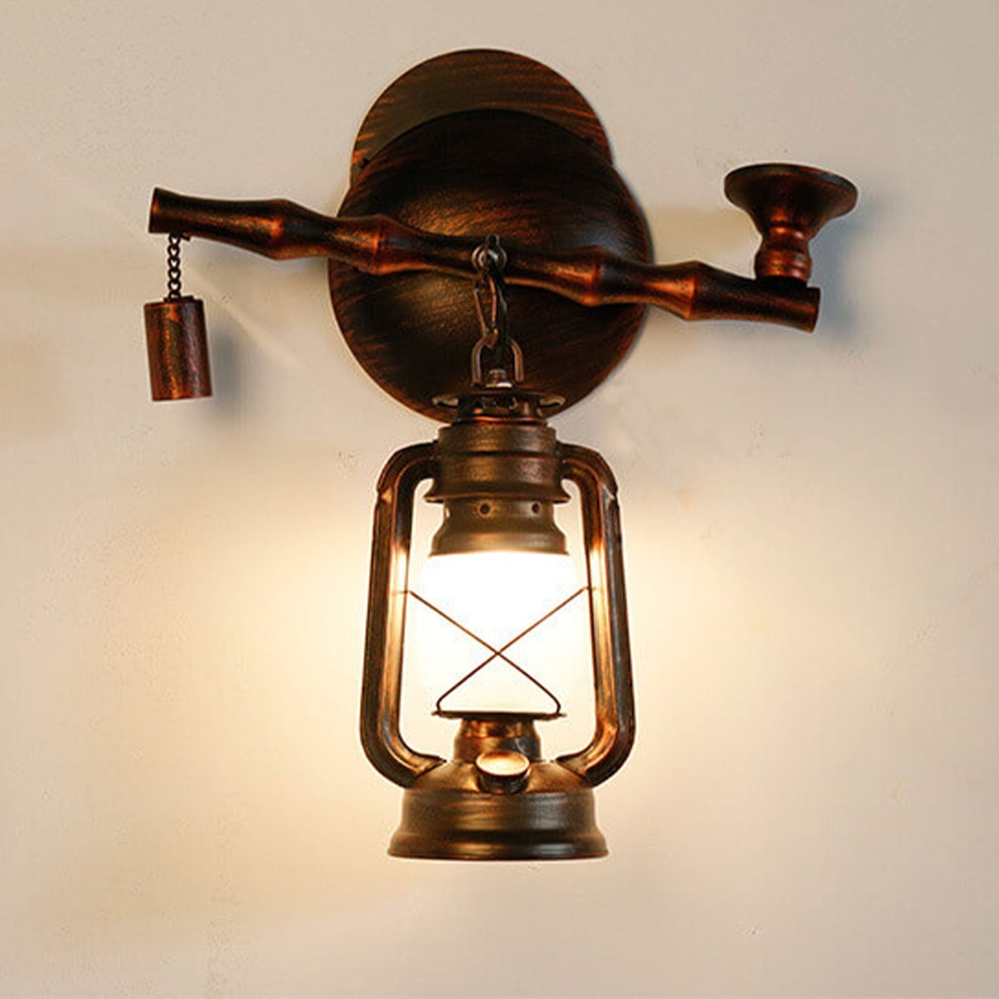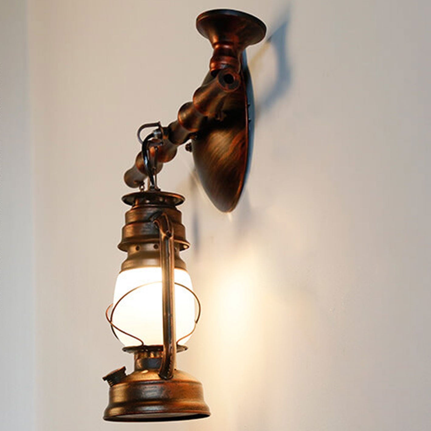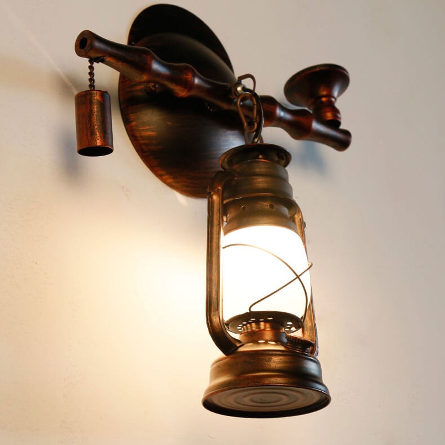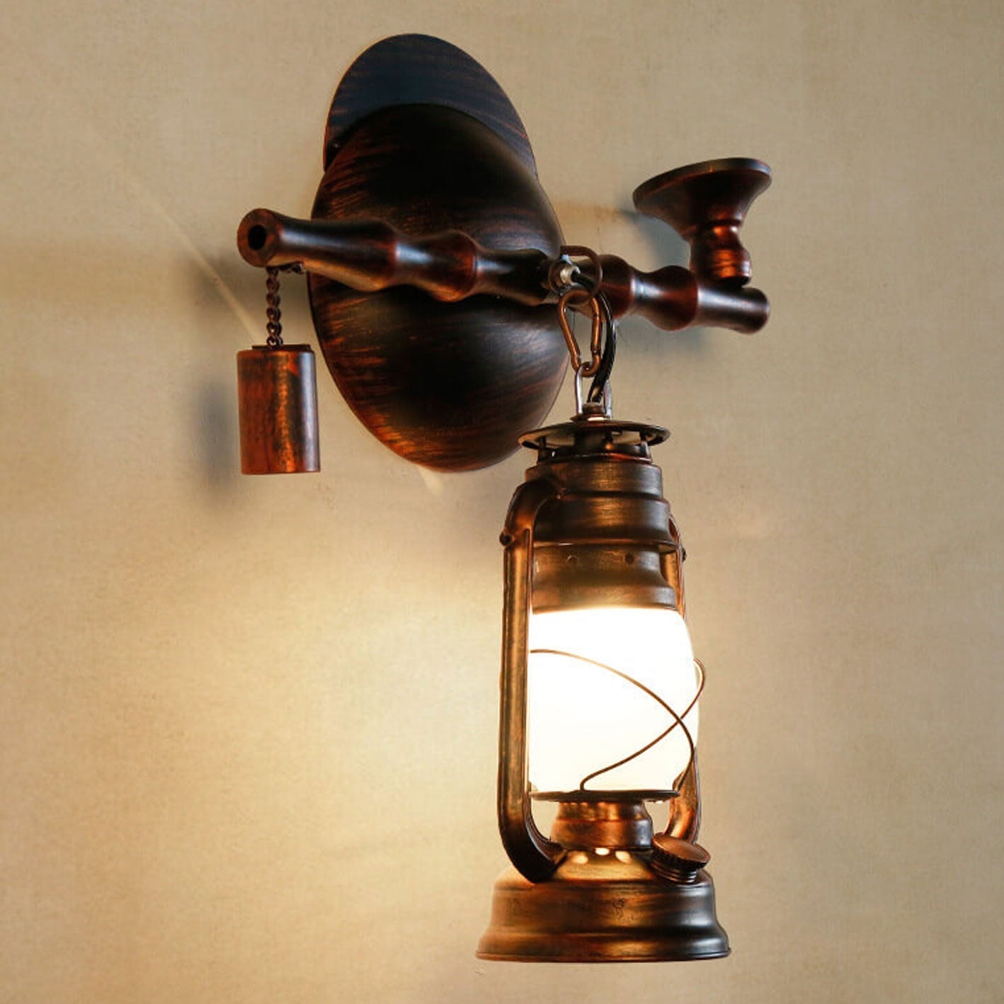 مصباح حائط عتيق مصنوع من أنابيب الكيروسين والحديد