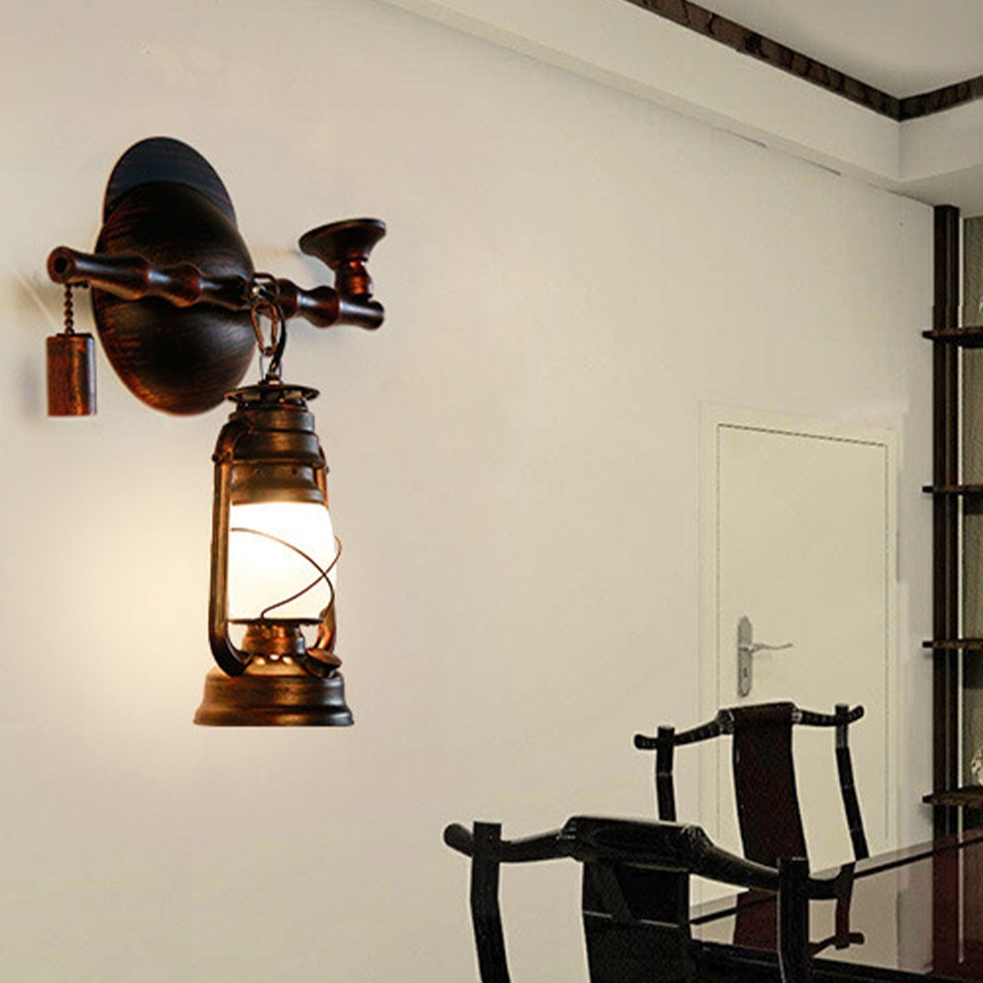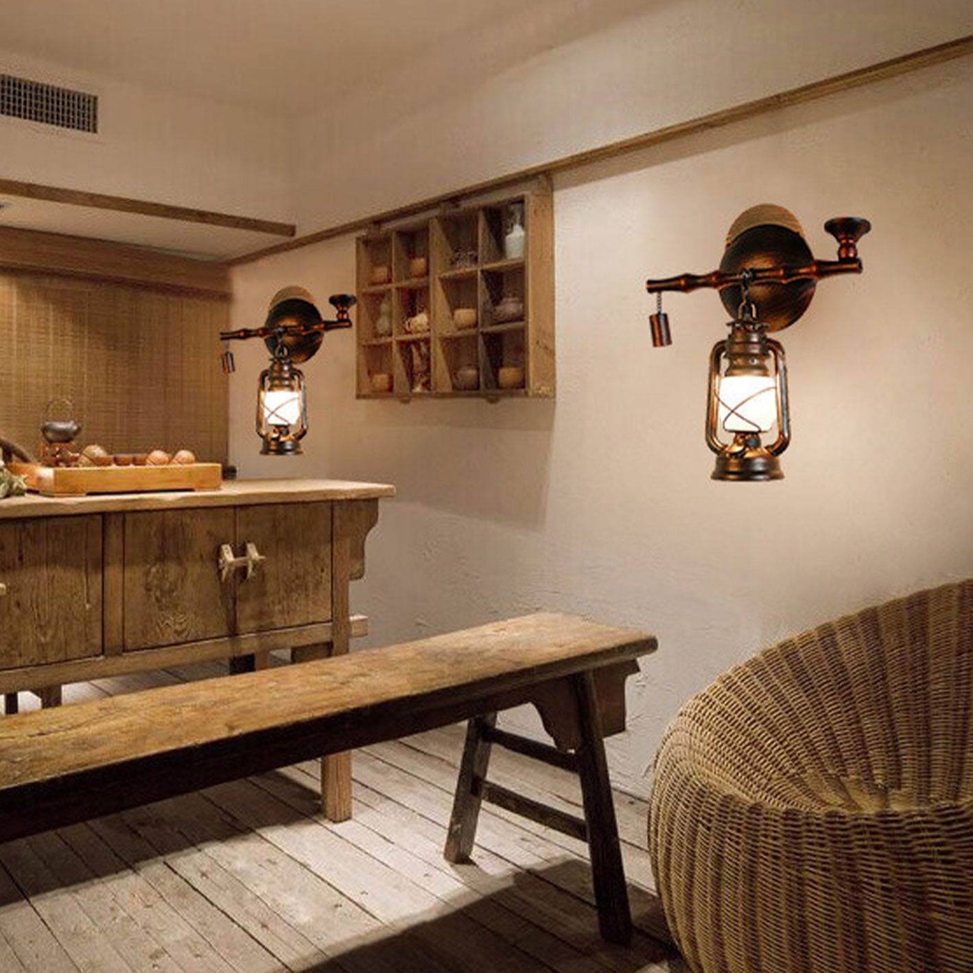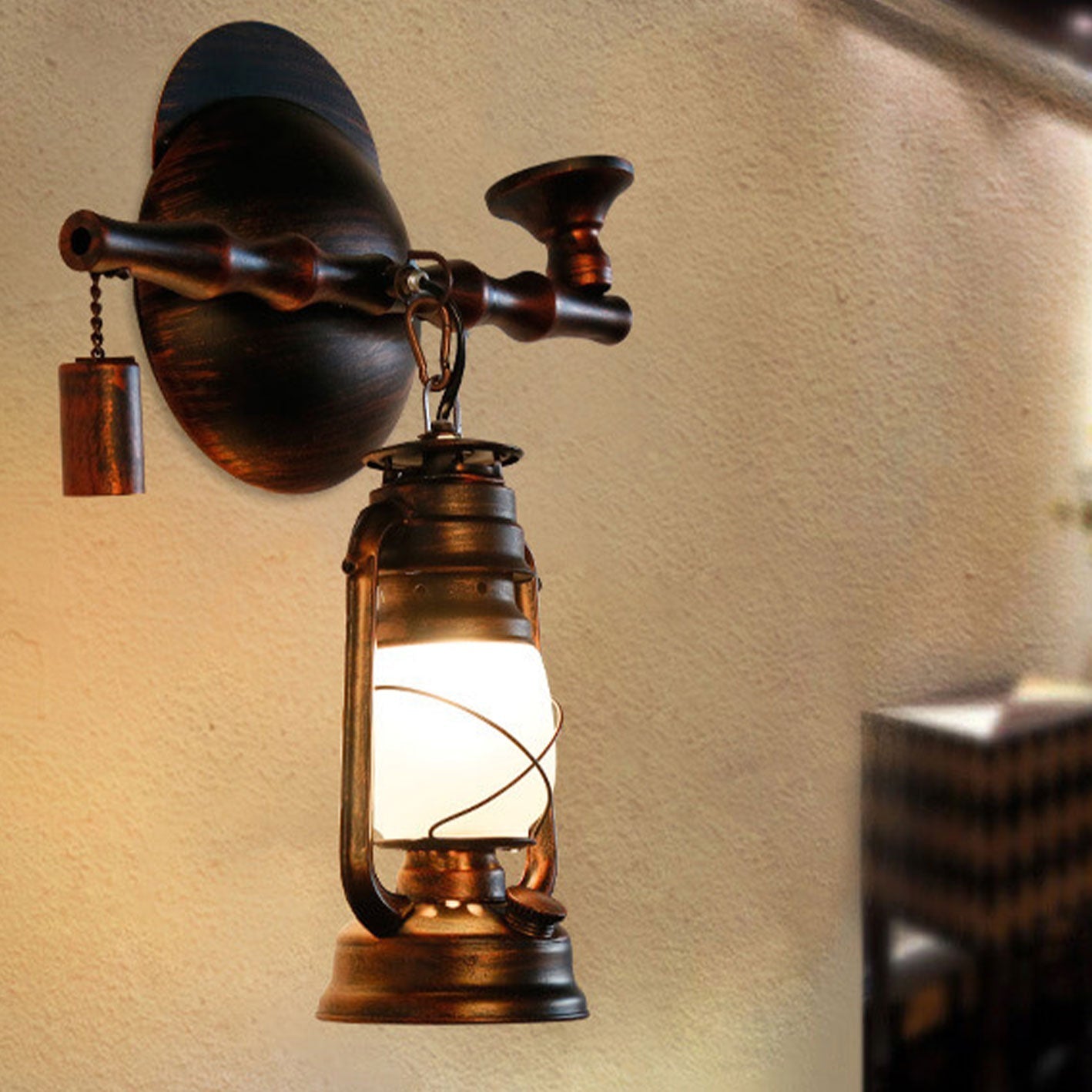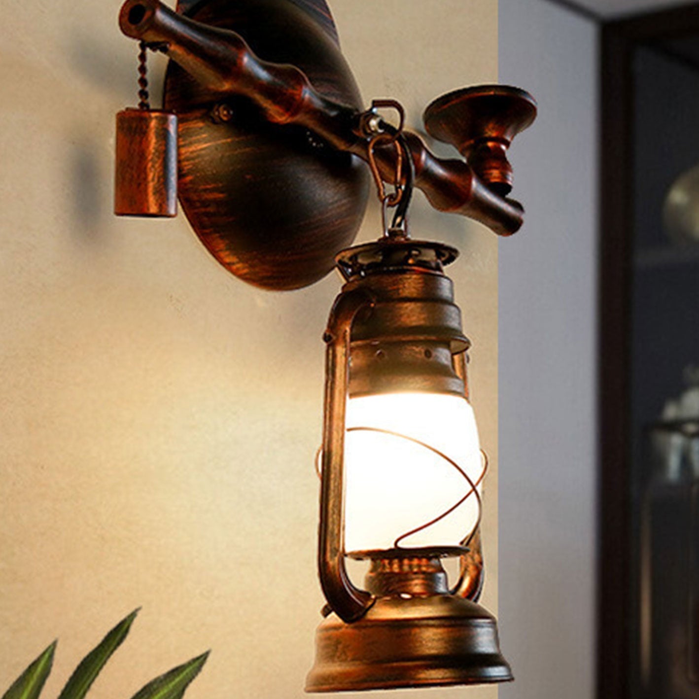 مصباح حائط عتيق مصنوع من أنابيب الكيروسين والحديد