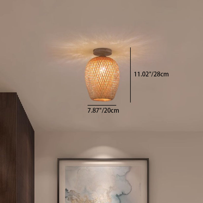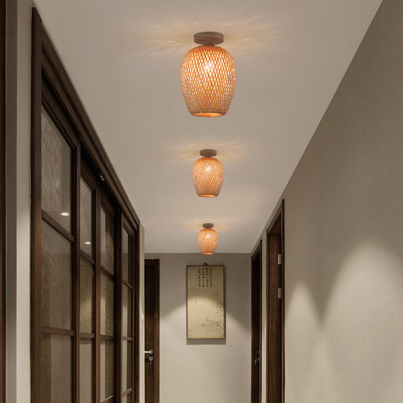 مصباح سقف شبه مسطح بتصميم بوهو معاصر مصنوع من خشب الخيزران المنسوج، 1 ضوء، للممرات