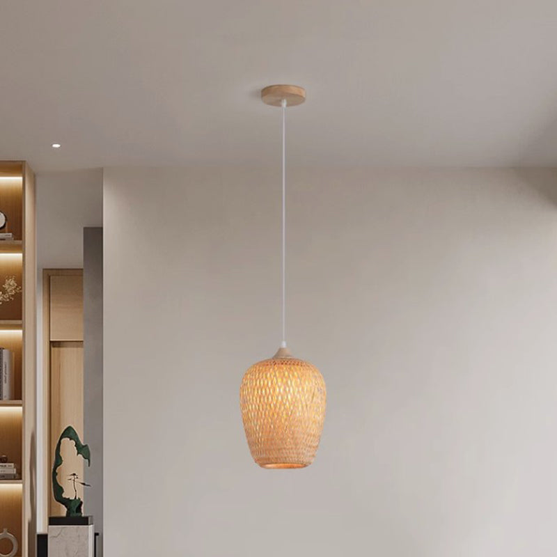مصباح معلق معاصر على شكل فانوس بوهو مصنوع من خشب الخيزران المنسوج، 1 مصباح لغرفة الطعام