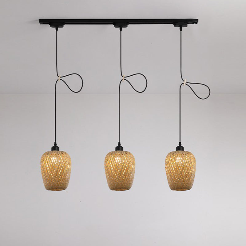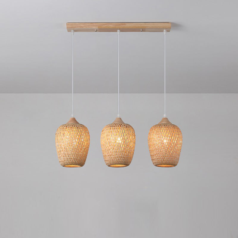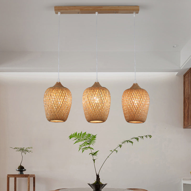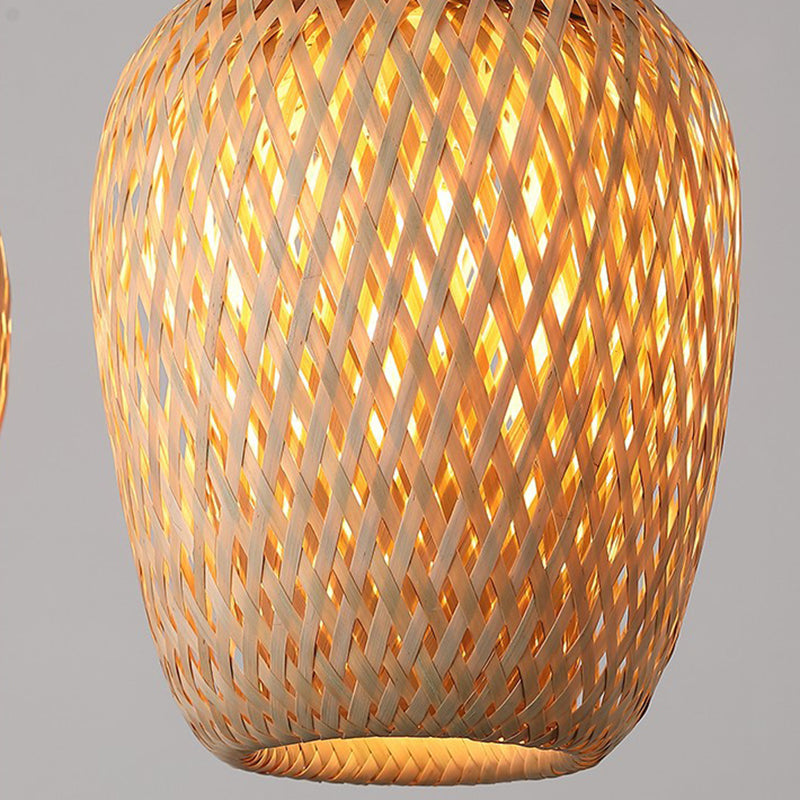 ثريا معاصرة على شكل فانوس بوهو مصنوعة من خشب الخيزران المنسوج بثلاثة مصابيح لغرفة المعيشة