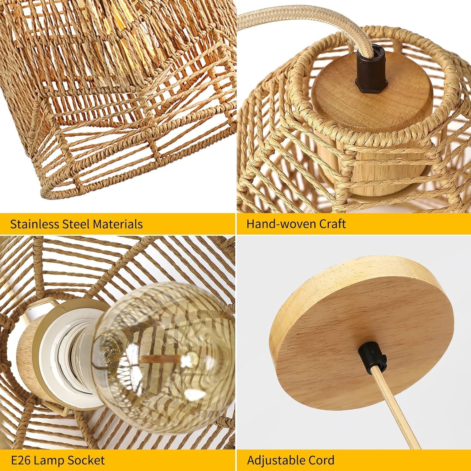 مصباح معلق معاصر على شكل فانوس بوهو مصنوع من خشب الروطان المتين لغرفة الطعام