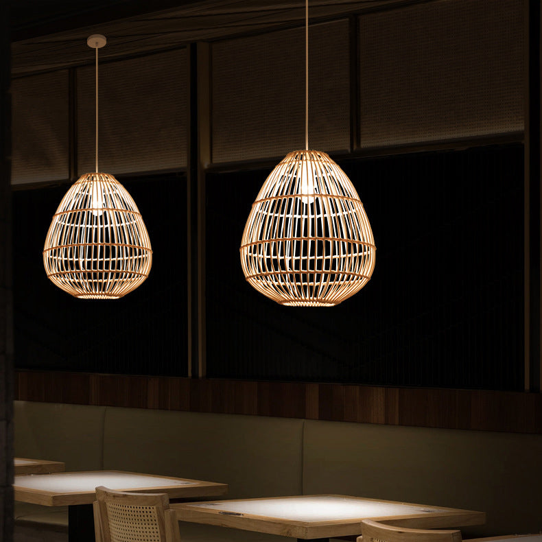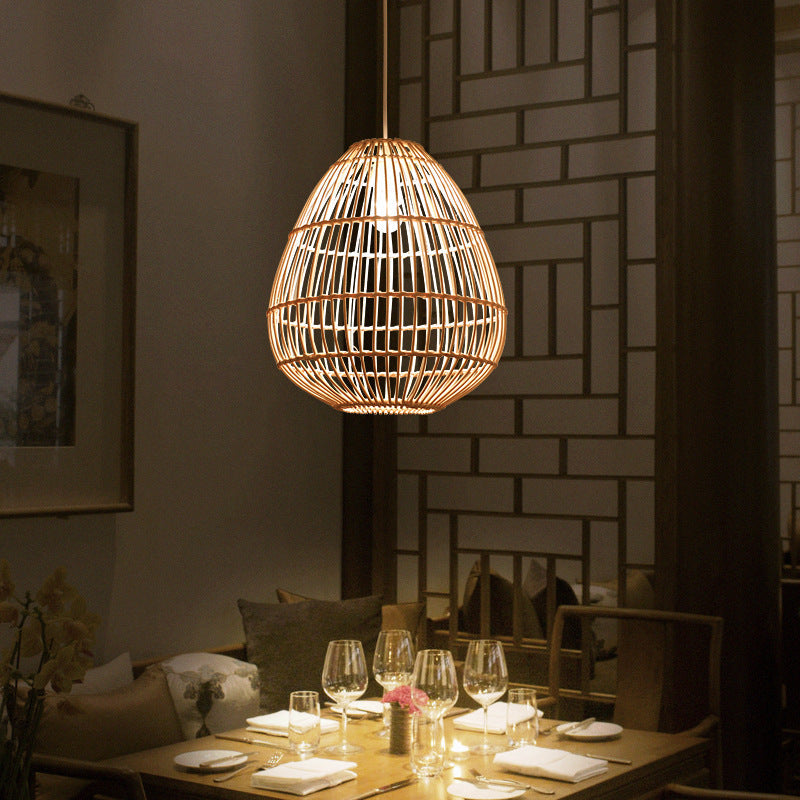 مصباح معلق بتصميم بوهو معاصر مصنوع من الخيزران، مزود بمصباح واحد، لغرفة الطعام