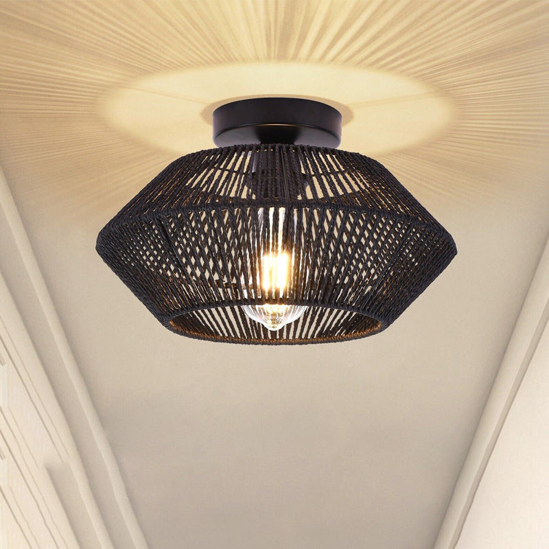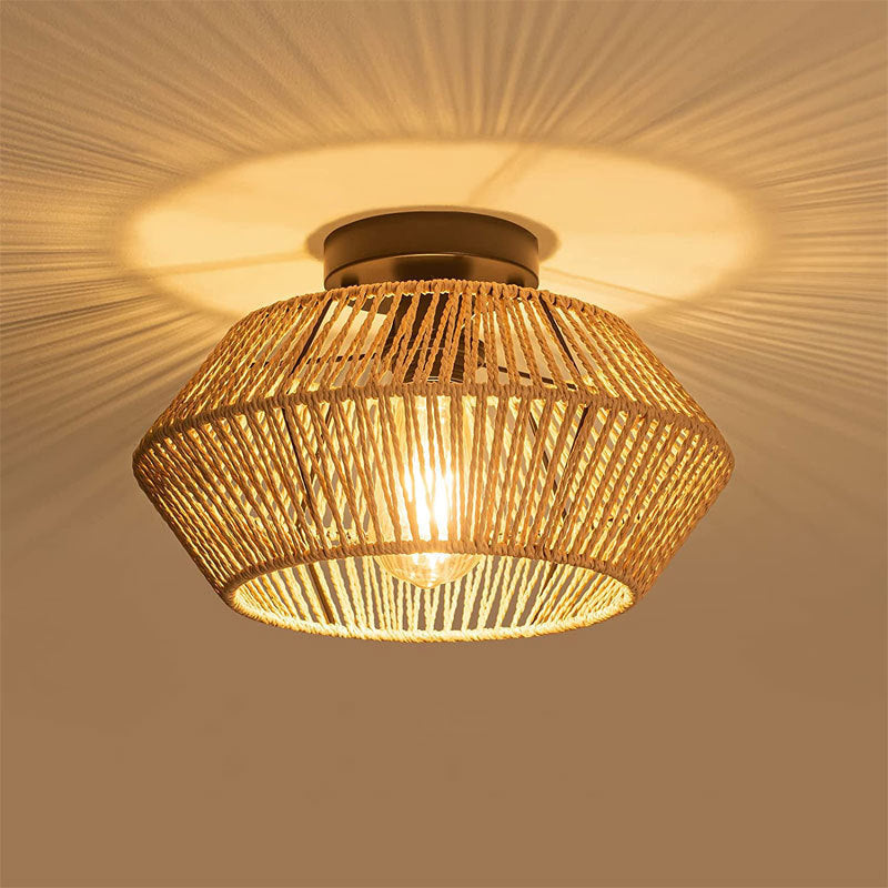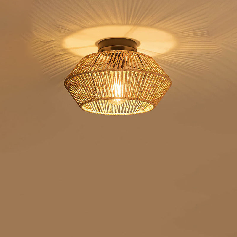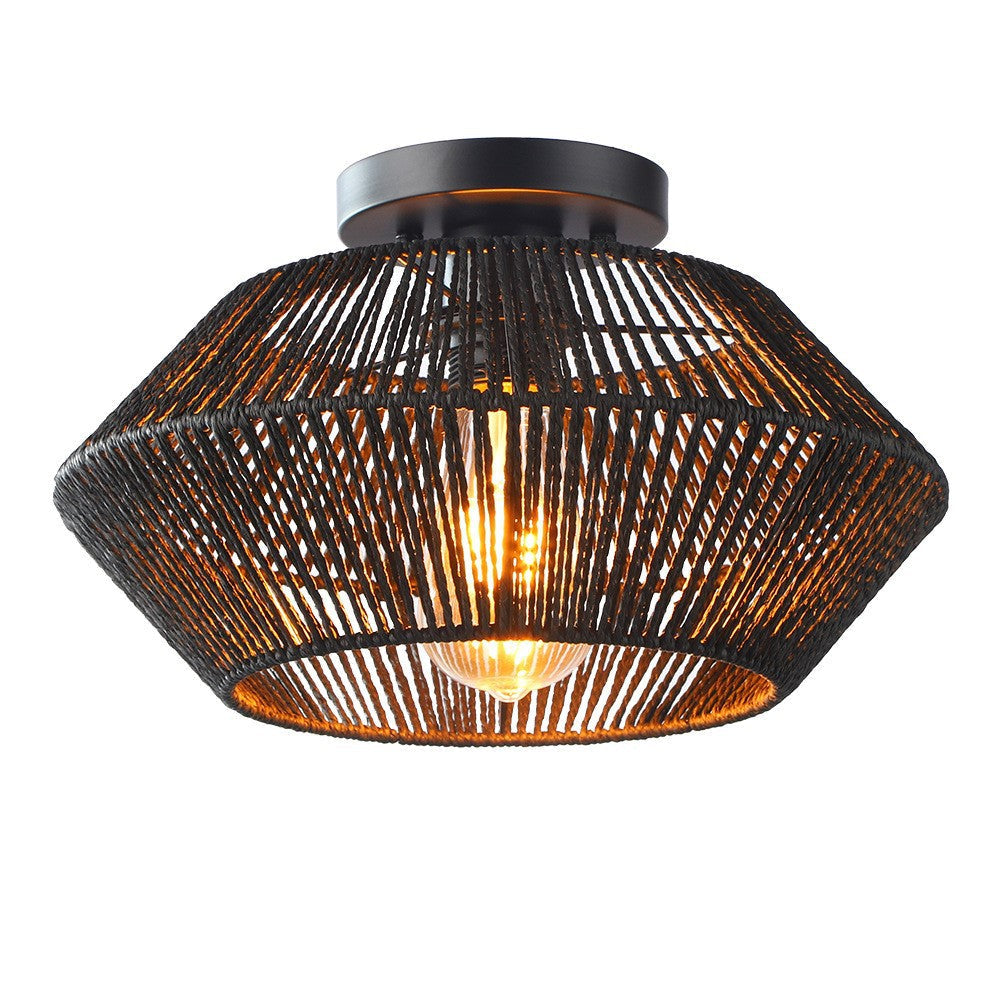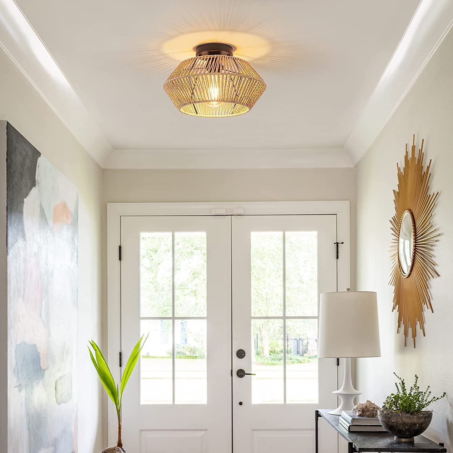 مصباح سقف دائري معاصر من الخيزران بتصميم بوهو، مزود بمصباح واحد، وتركيب شبه مسطح، لغرفة المعيشة