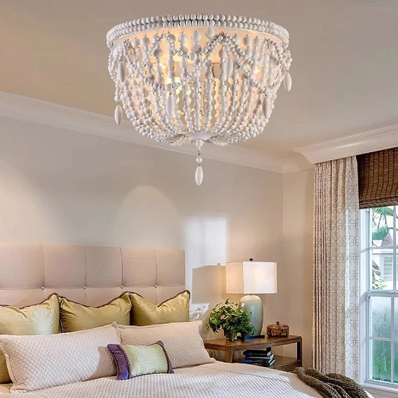 مصباح سقف معاصر بتصميم بوهو على شكل نصف دائرة من الخرز الخشبي، مقاس 3/5/6 بوصة، مناسب لغرفة النوم