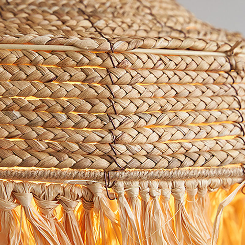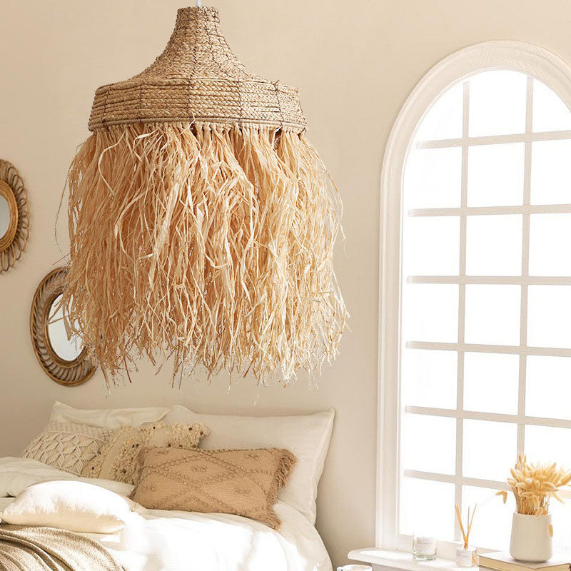 مصباح معلق بتصميم قبعة القش البوهيمية المعاصرة، مزود بشراشيب، لغرفة الطعام