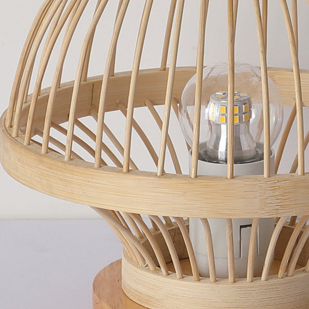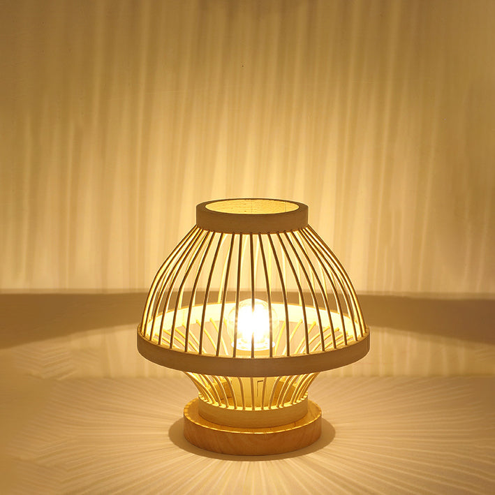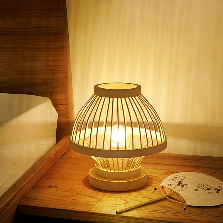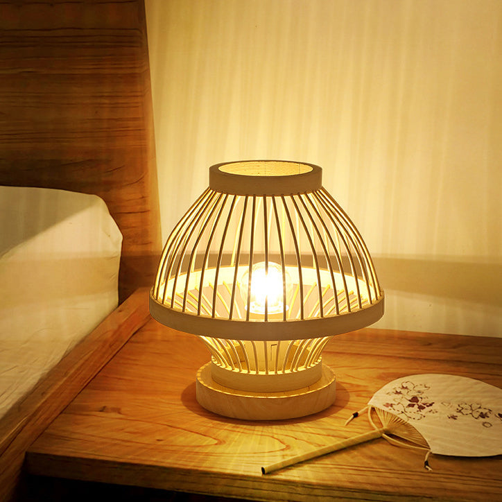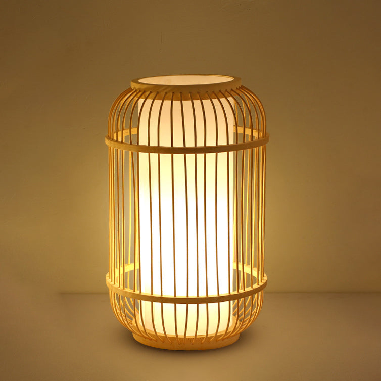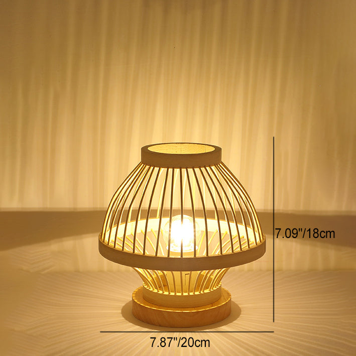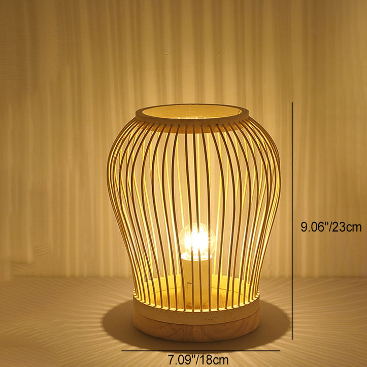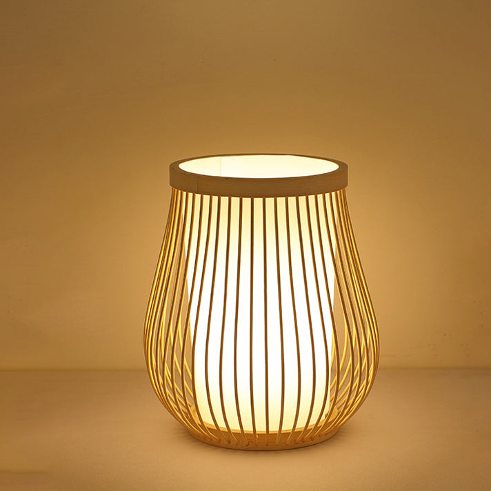 Contemporary Boho Wood Bamboo Weaving Lantern Shape 1-Light Table Lamp For Bedroom