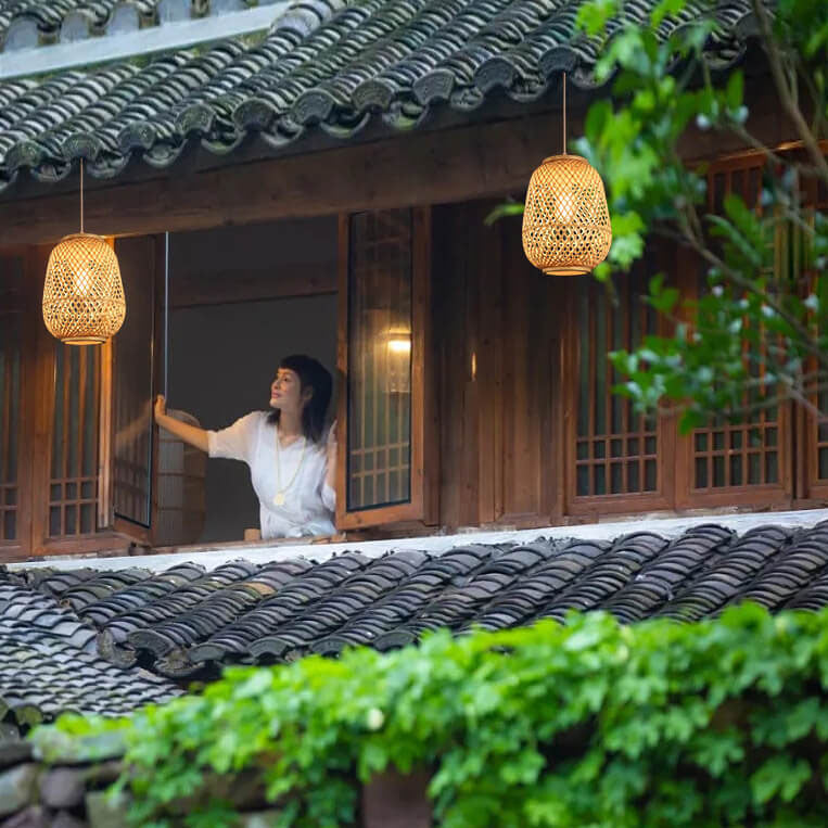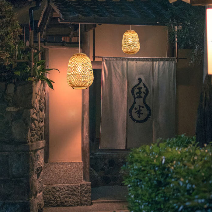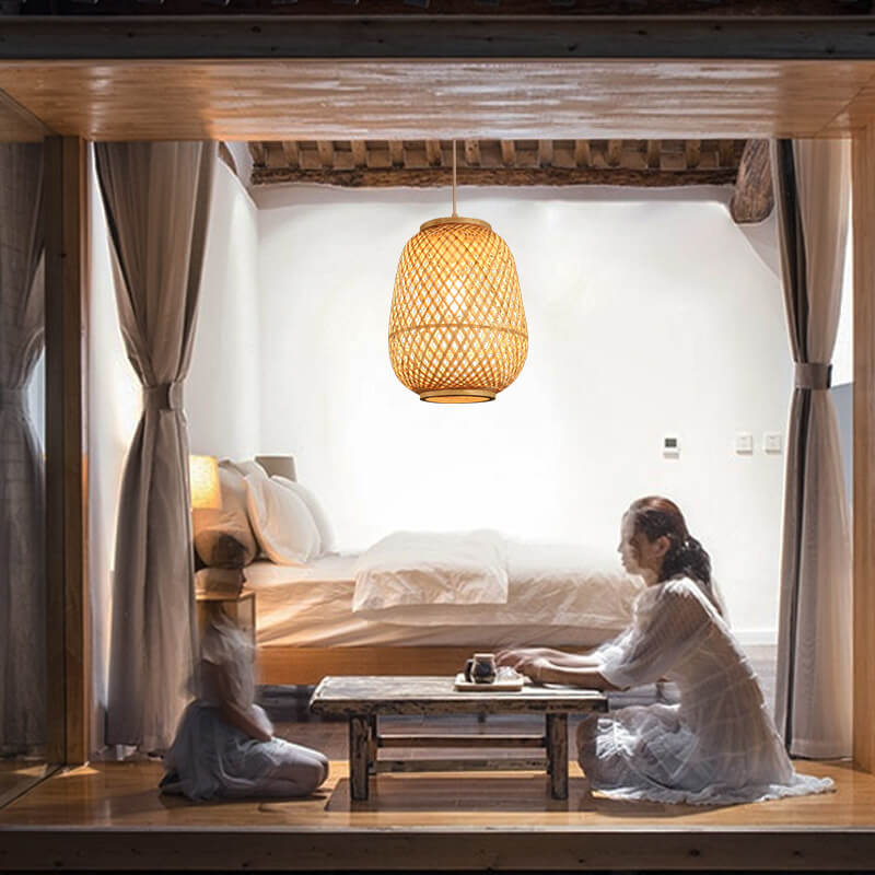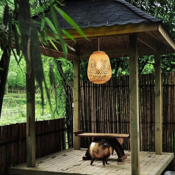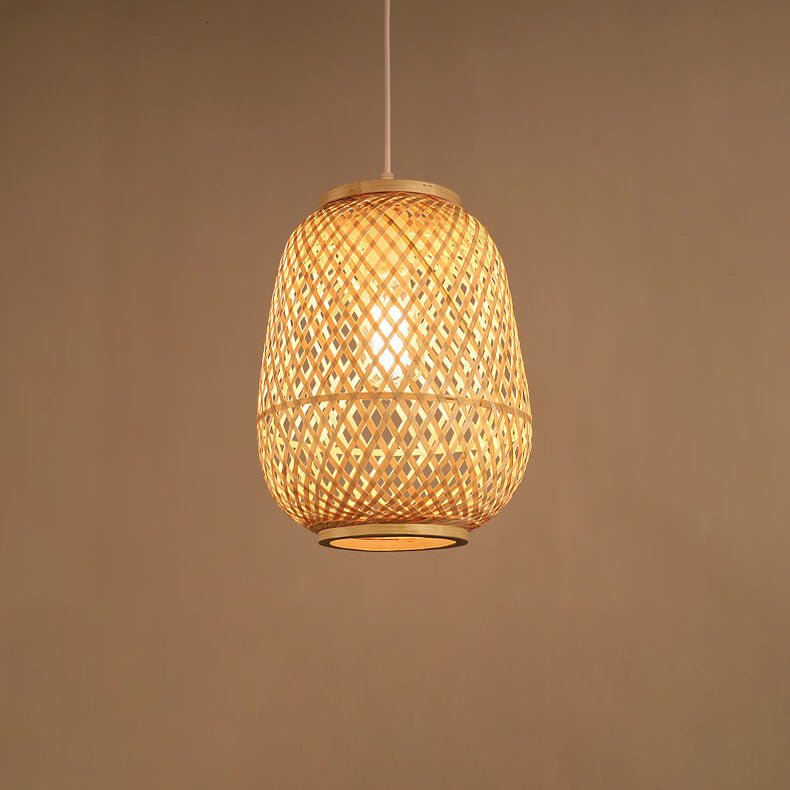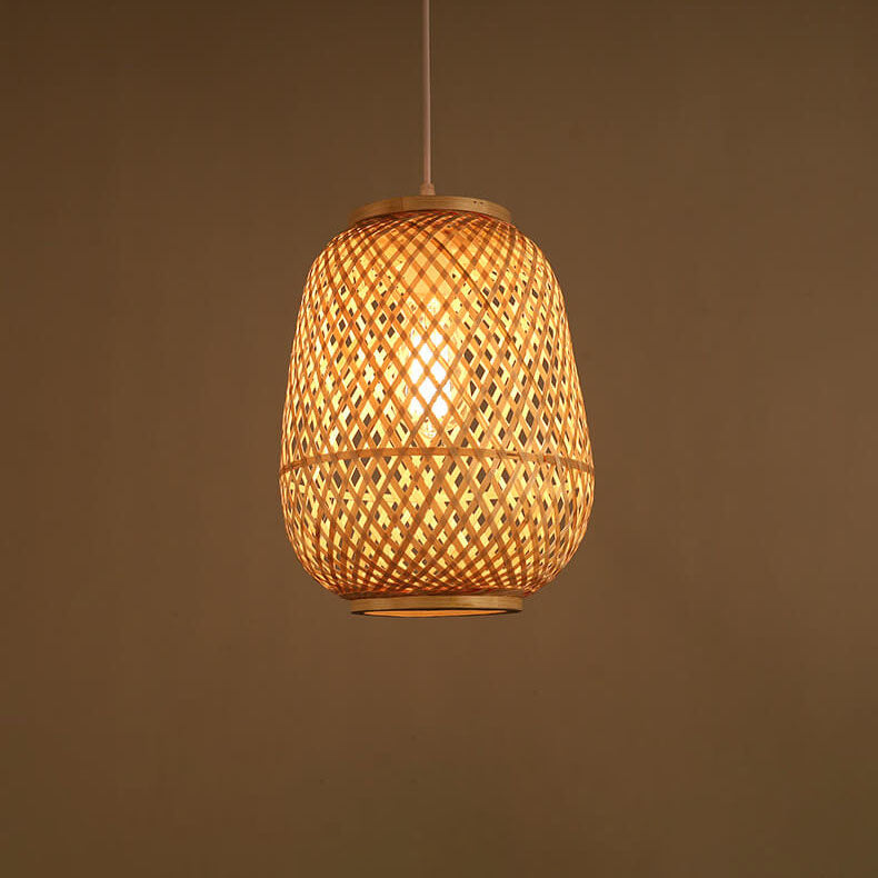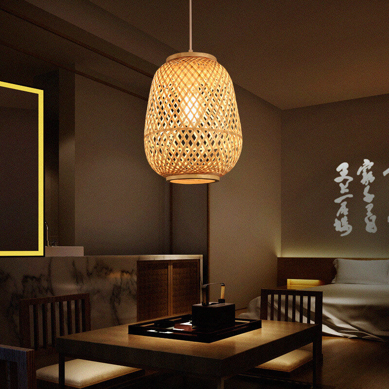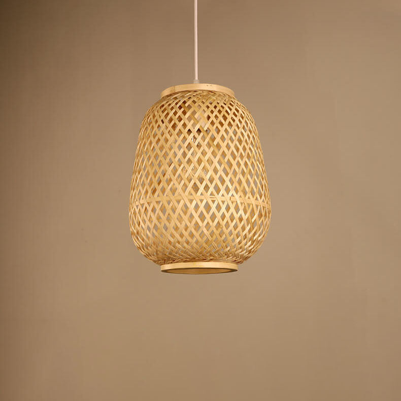مصباح معلق بيضاوي الشكل من الخيزران الساحلي المعاصر لغرفة الطعام، مزود بمصباح واحد