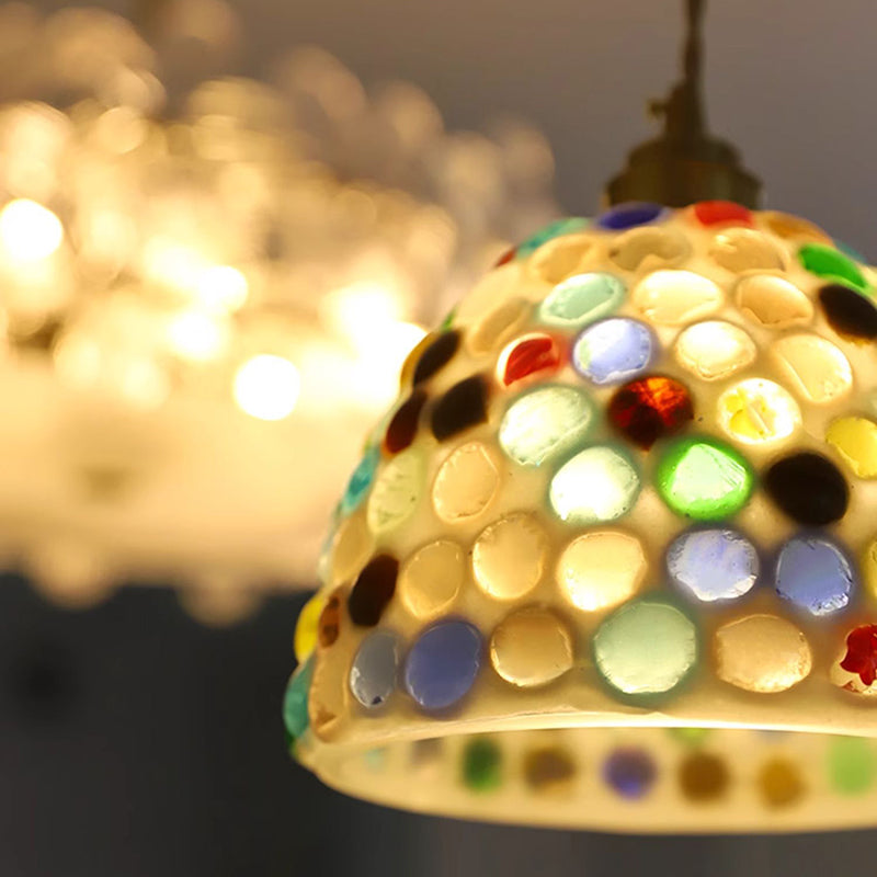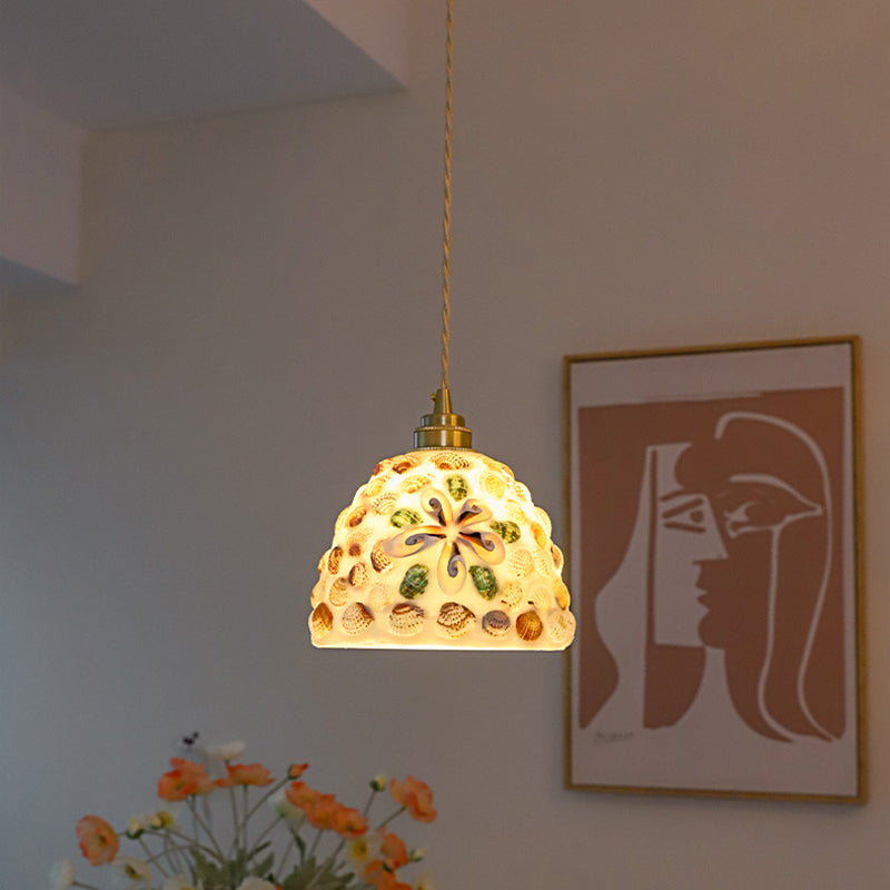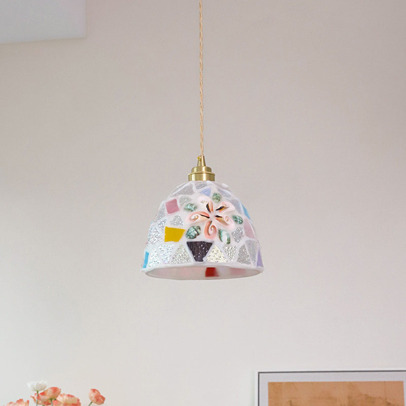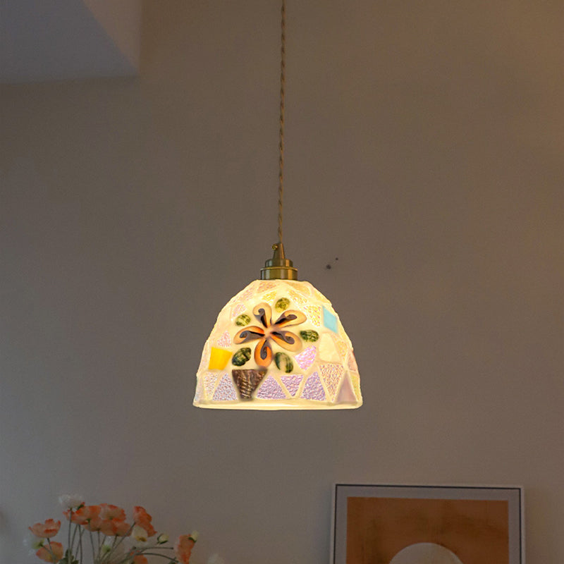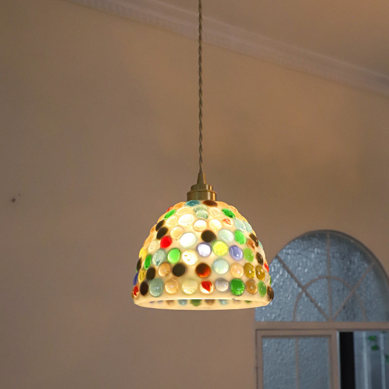 مصباح معلق معاصر على شكل قبة ساحلية من الزجاج والنحاس، مزود بمصباح واحد لغرفة المعيشة