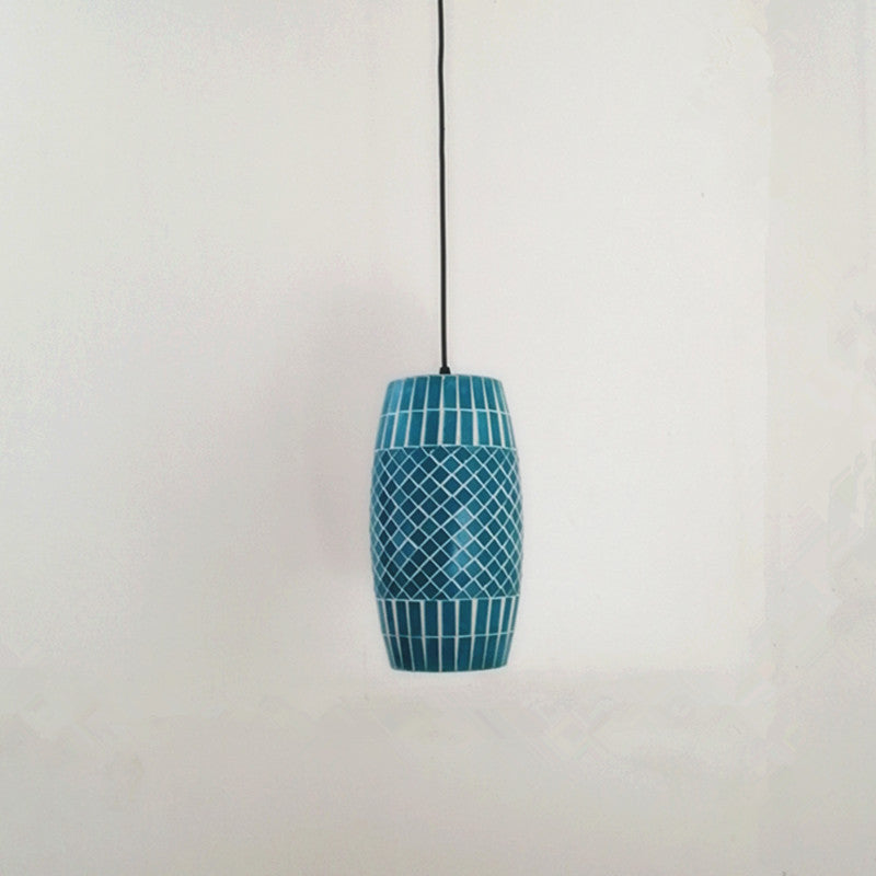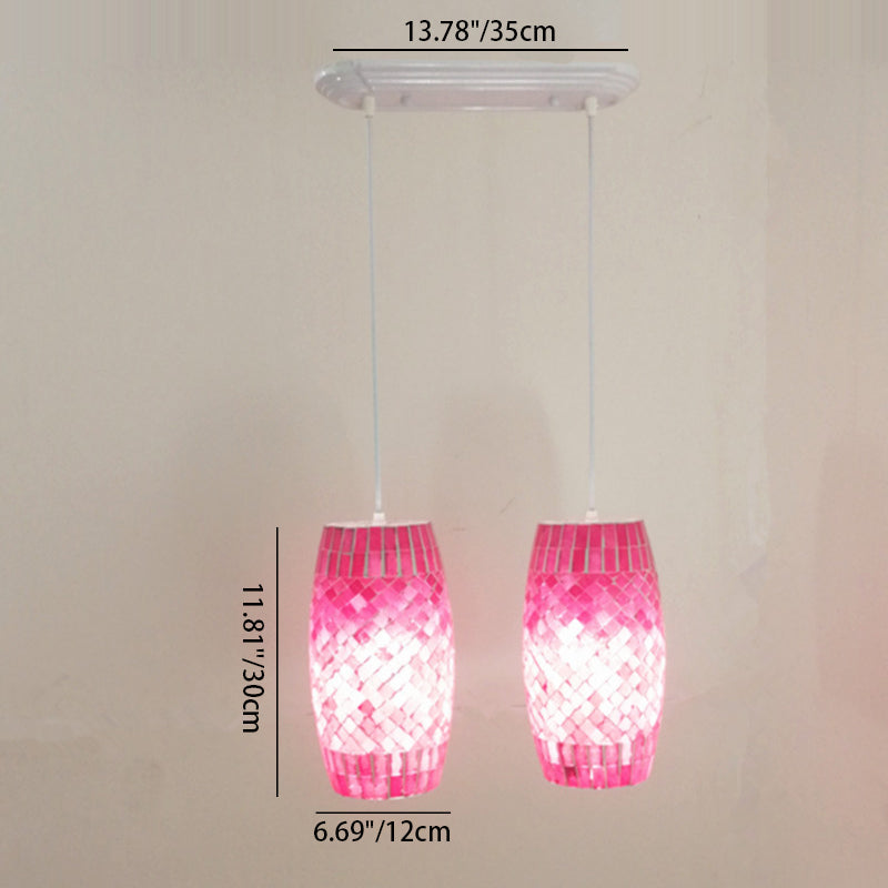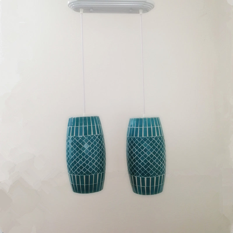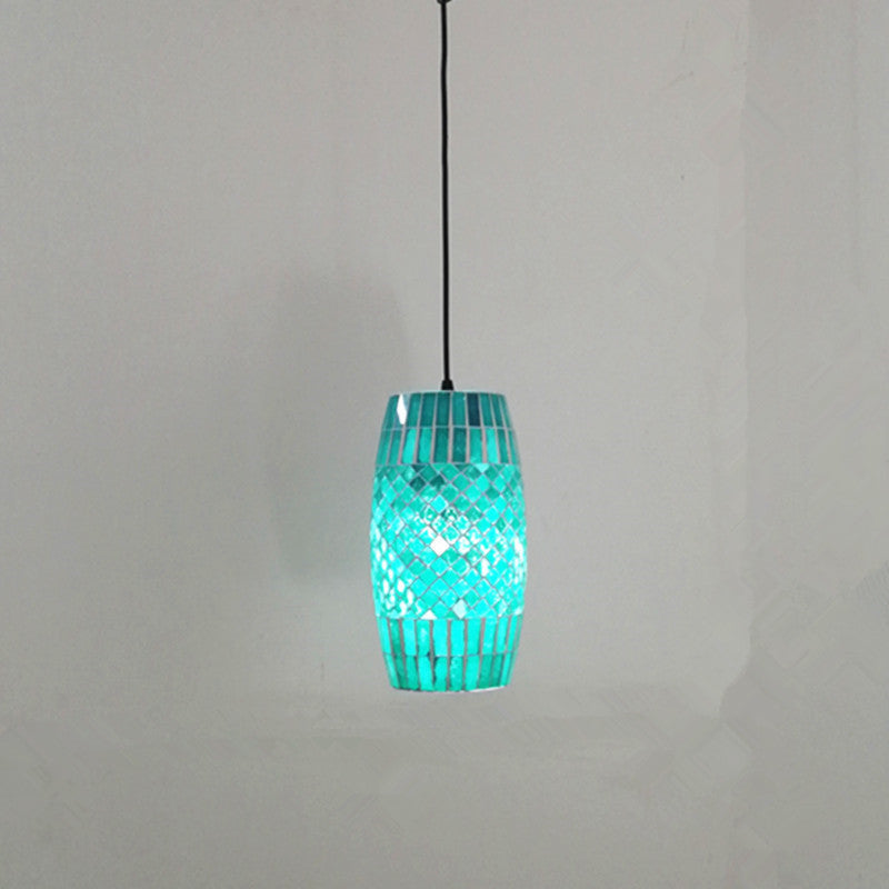 مصباح معلق معاصر من الزجاج الساحلي بتصميم أسطواني من الفسيفساء بنصف ضوء لغرفة الطعام