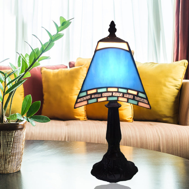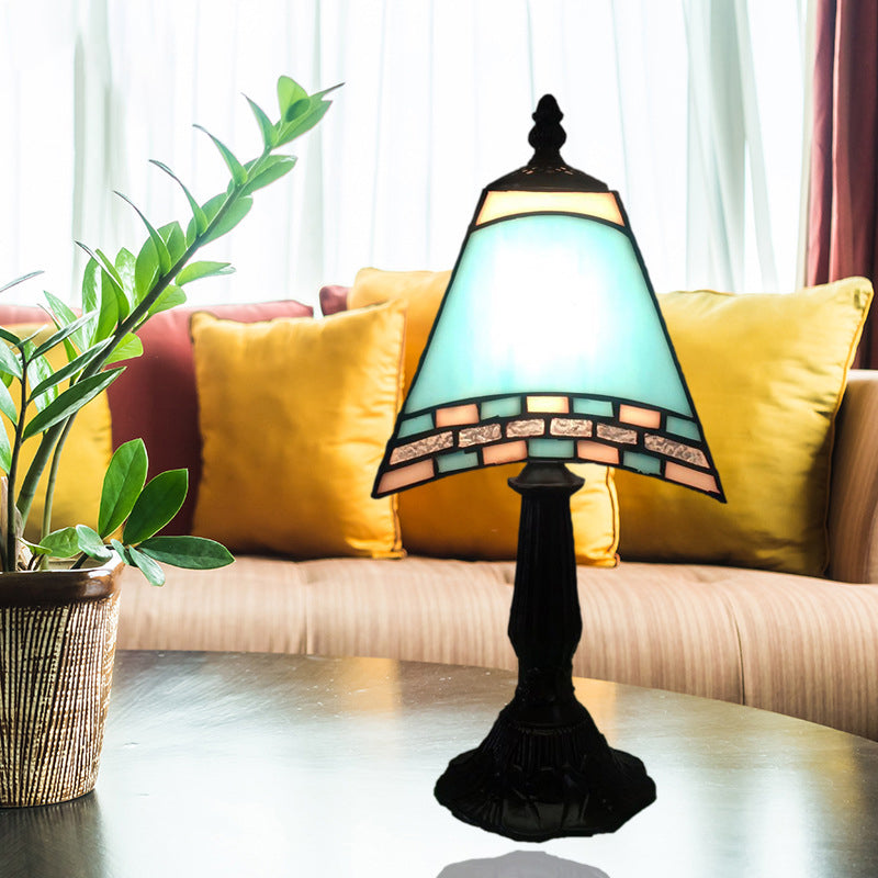 Contemporary Coastal Glass Resin Trapezoidal 1-Light Table Lamp For Bedside
