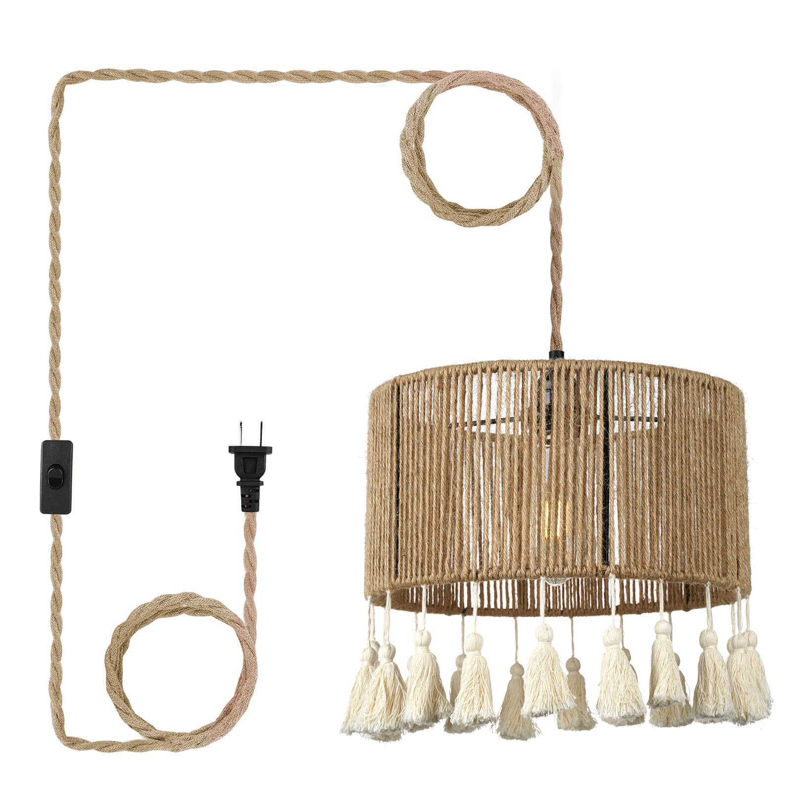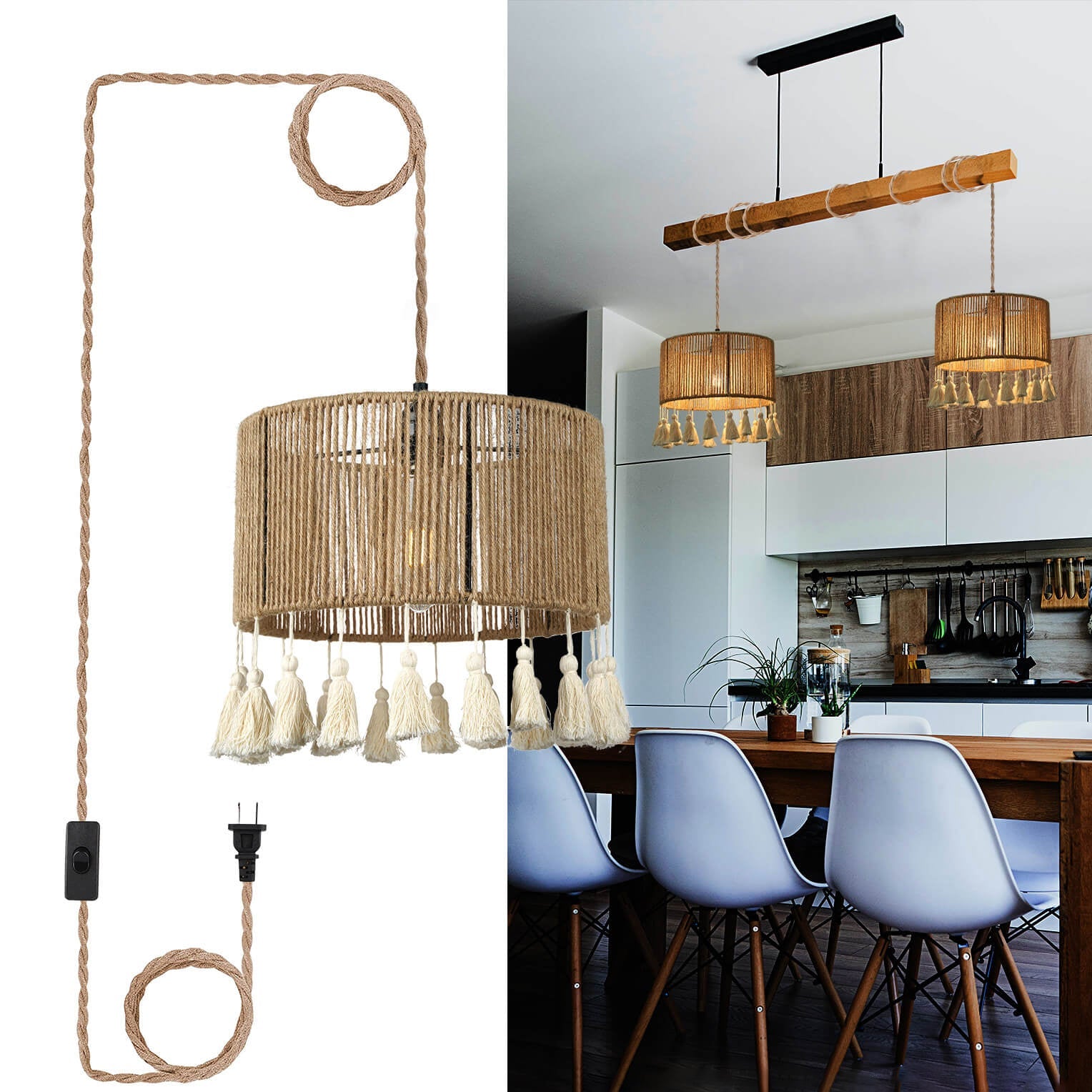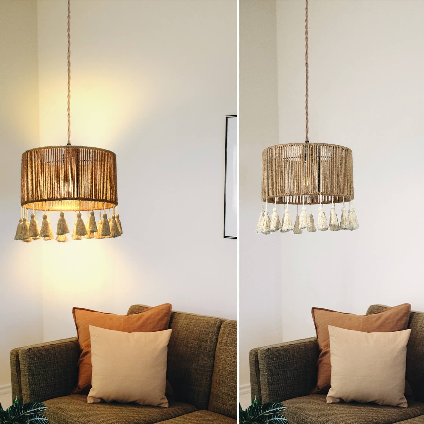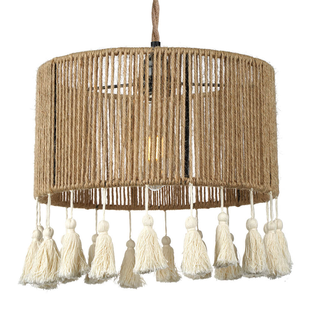 مصباح معلق عصري مستدير على شكل شرابة ساحلية من حبل القنب مع مصباح واحد لغرفة النوم