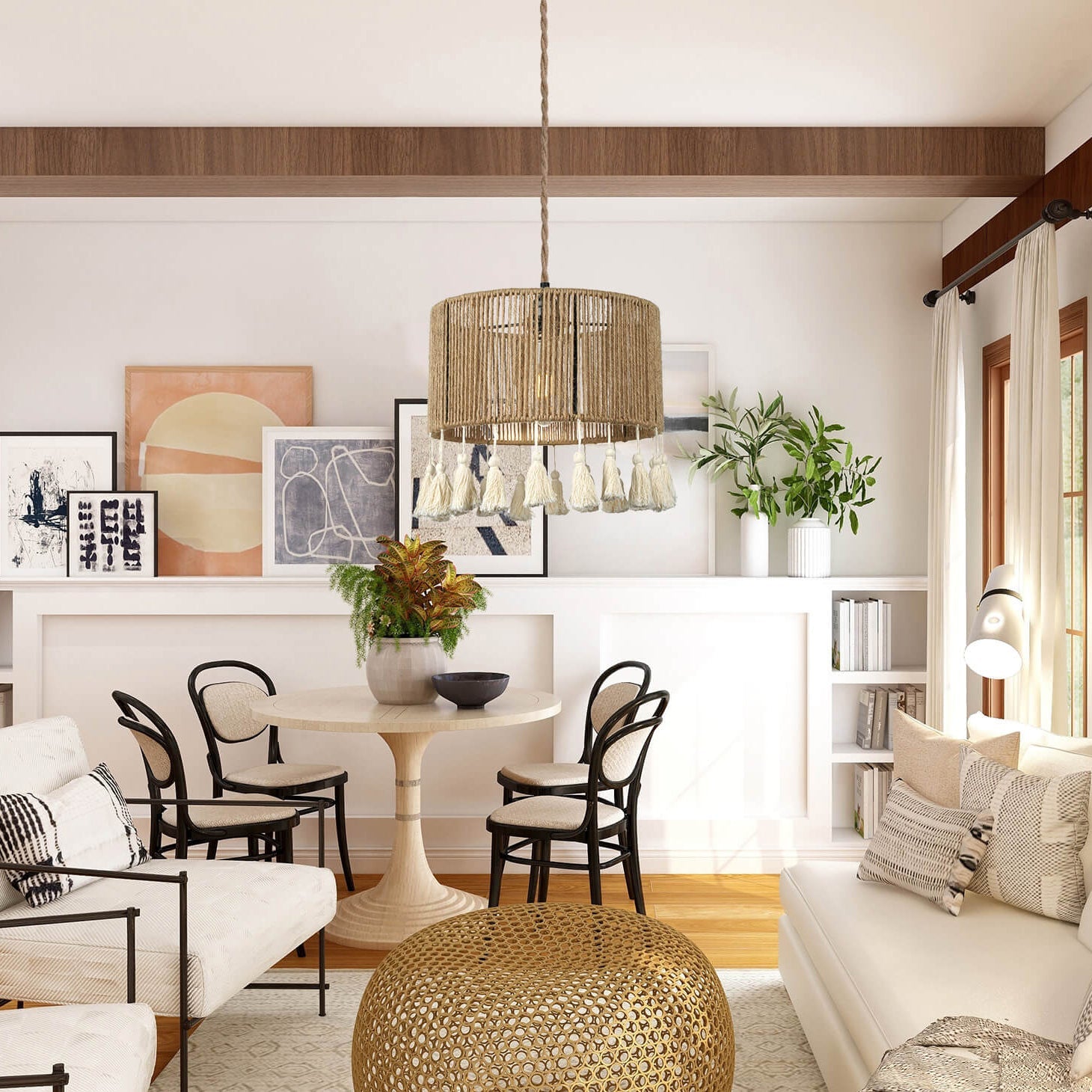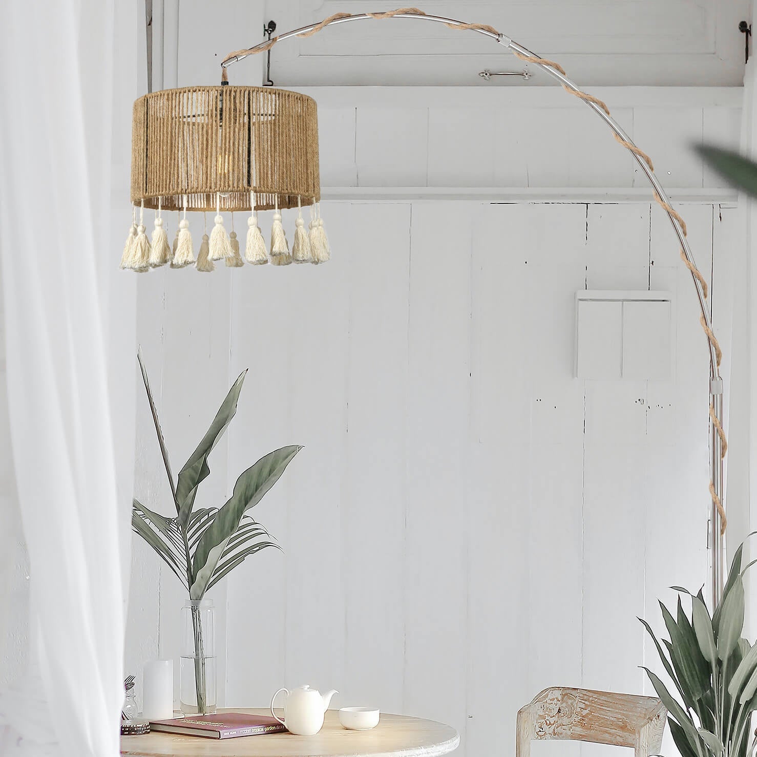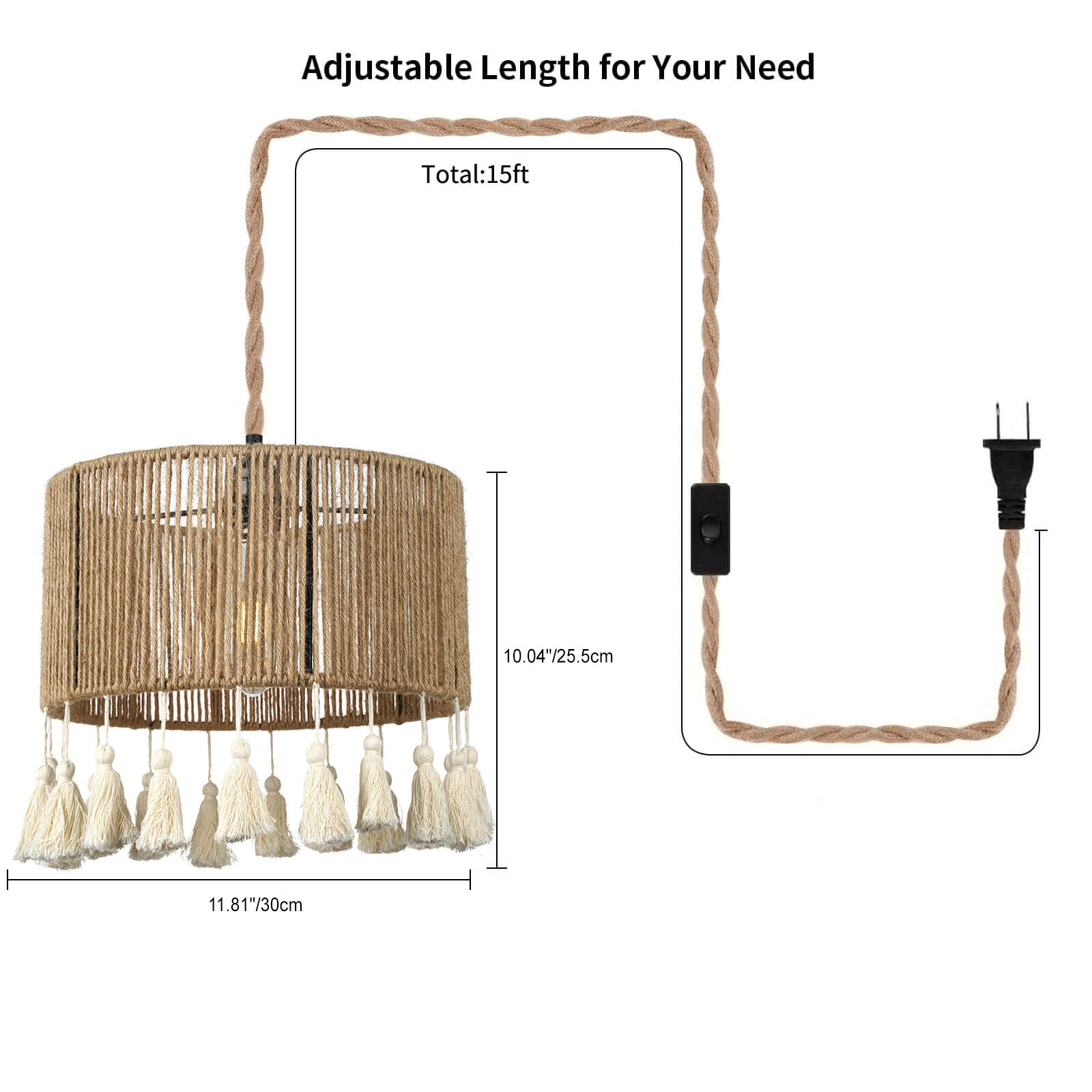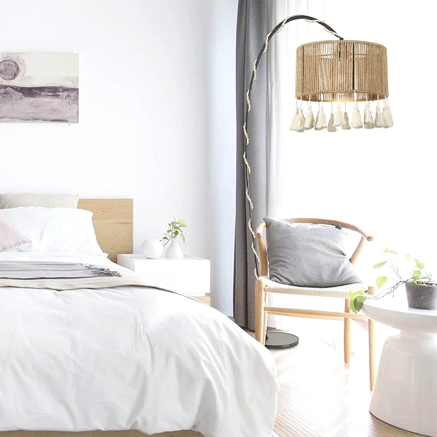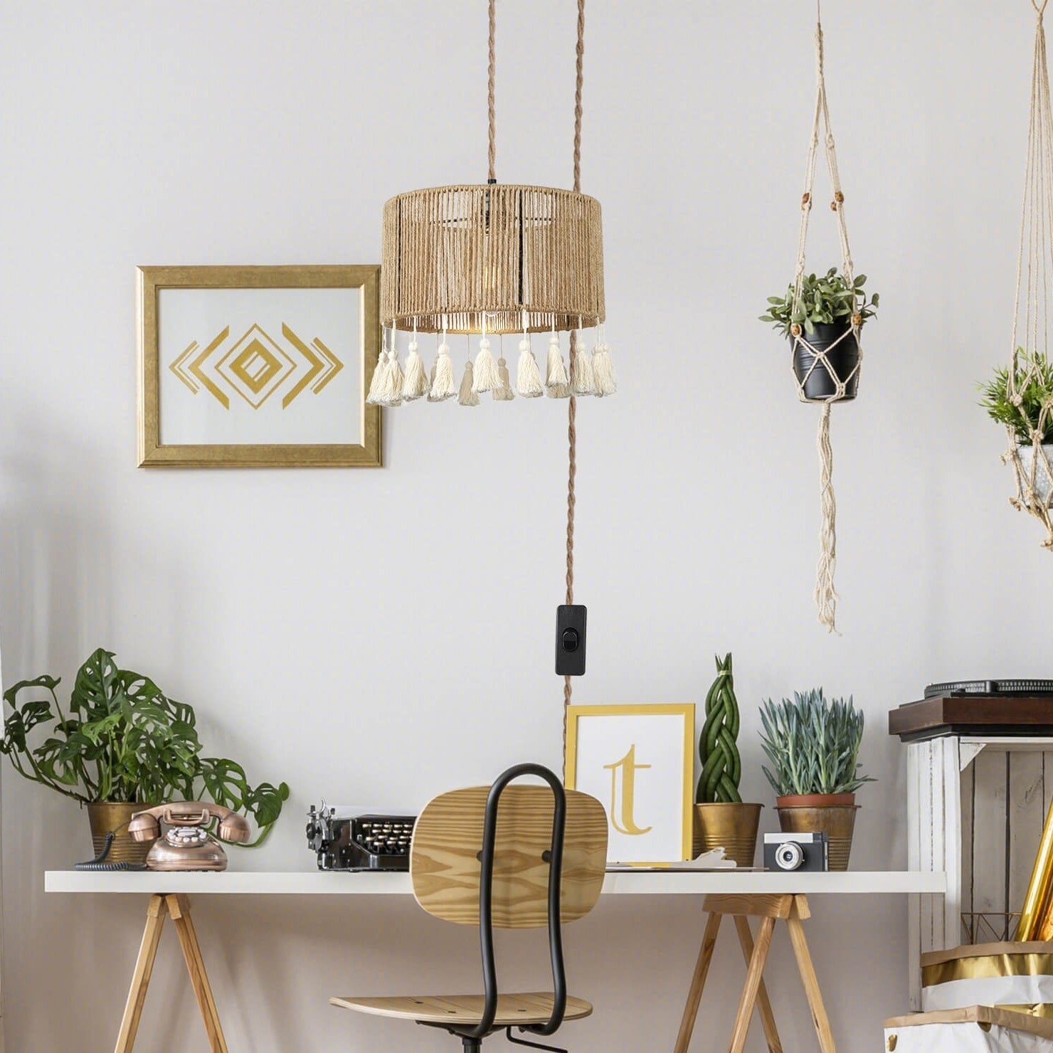 مصباح معلق عصري مستدير على شكل شرابة ساحلية من حبل القنب مع مصباح واحد لغرفة النوم