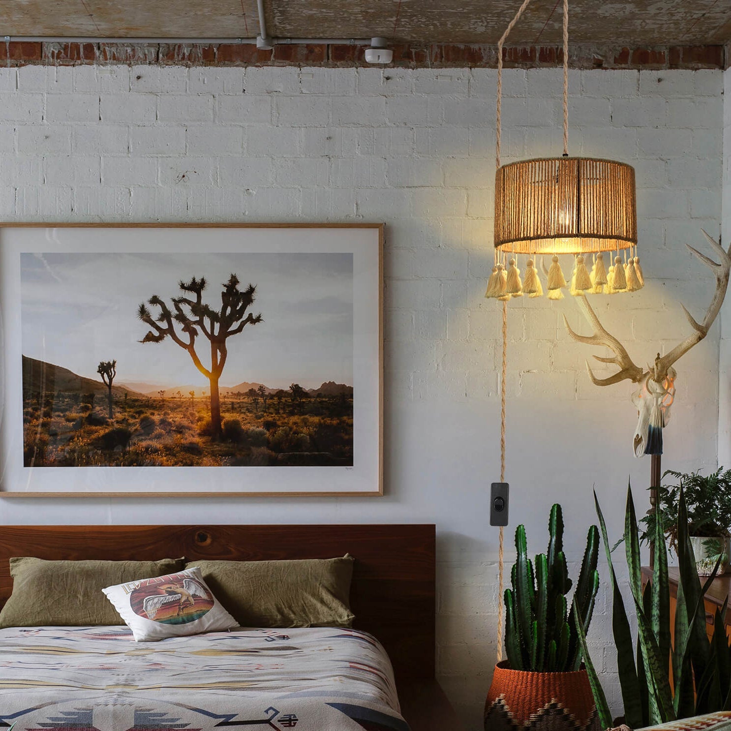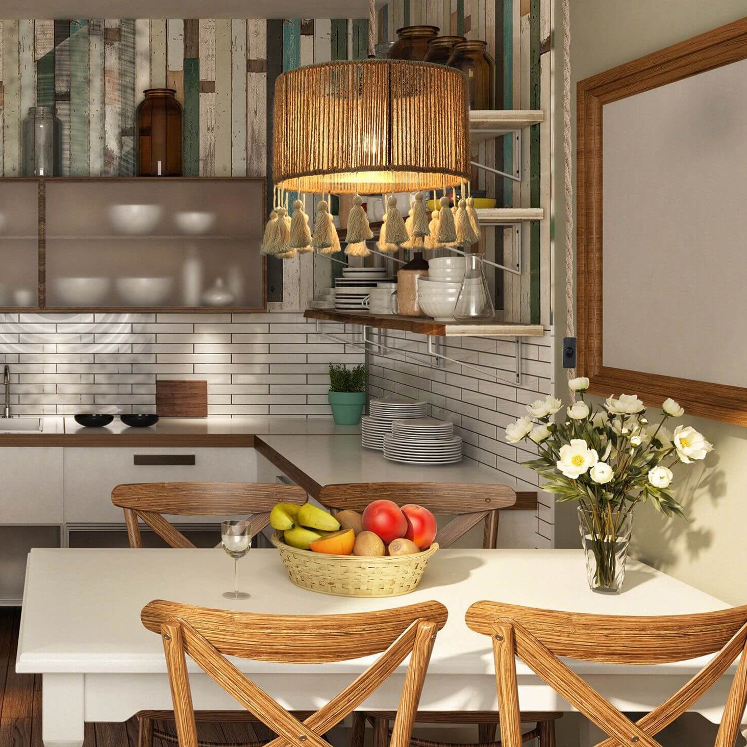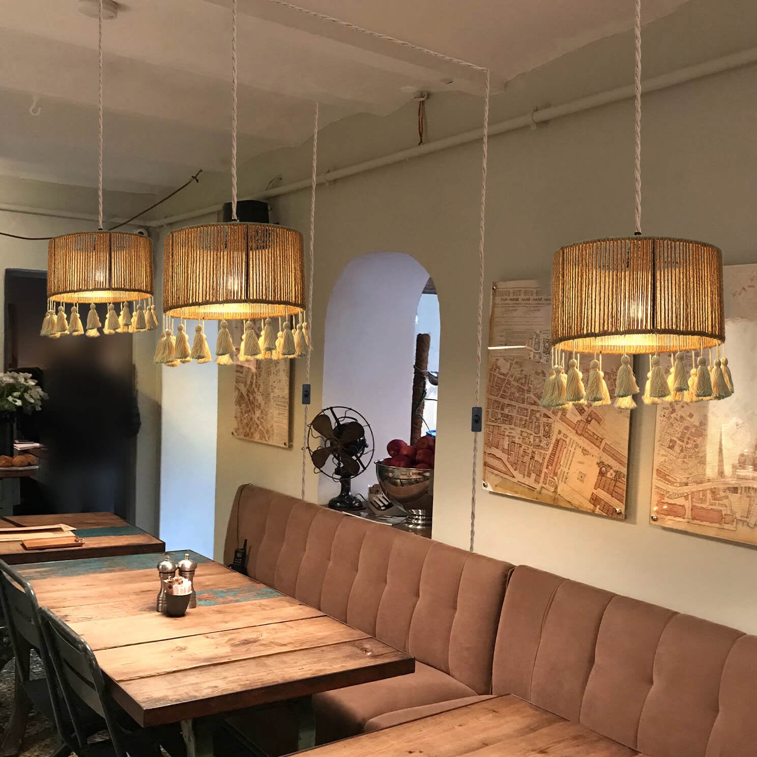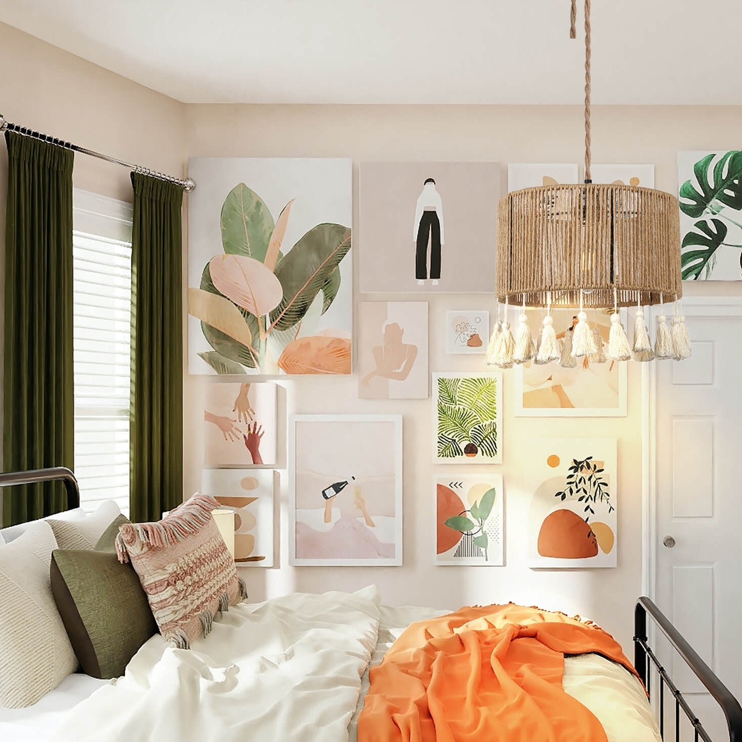 مصباح معلق عصري مستدير على شكل شرابة ساحلية من حبل القنب مع مصباح واحد لغرفة النوم