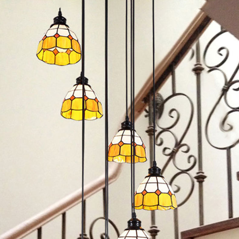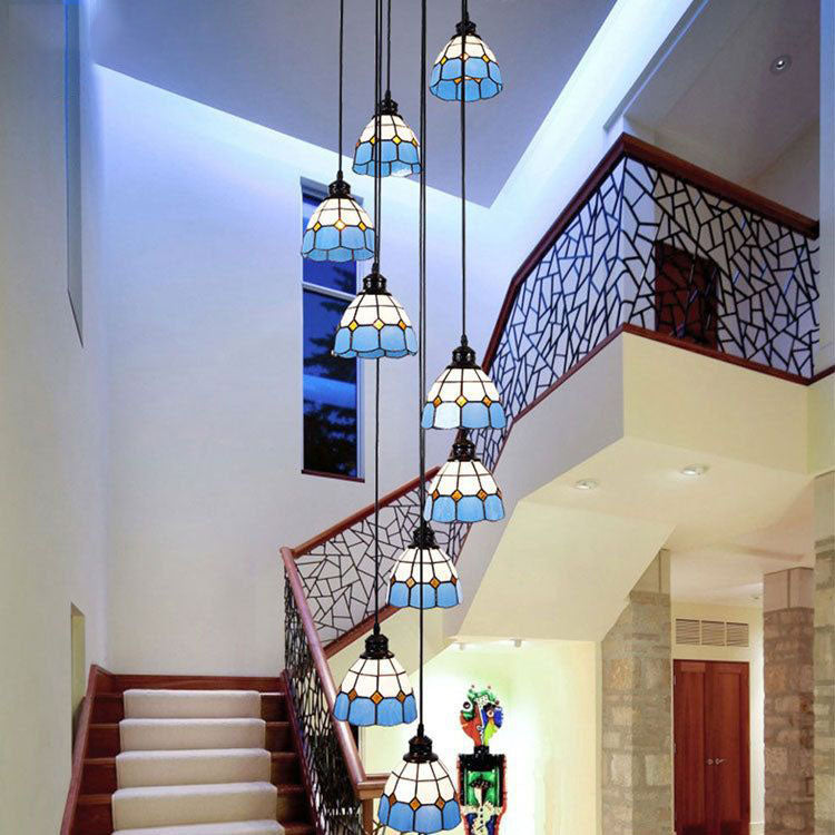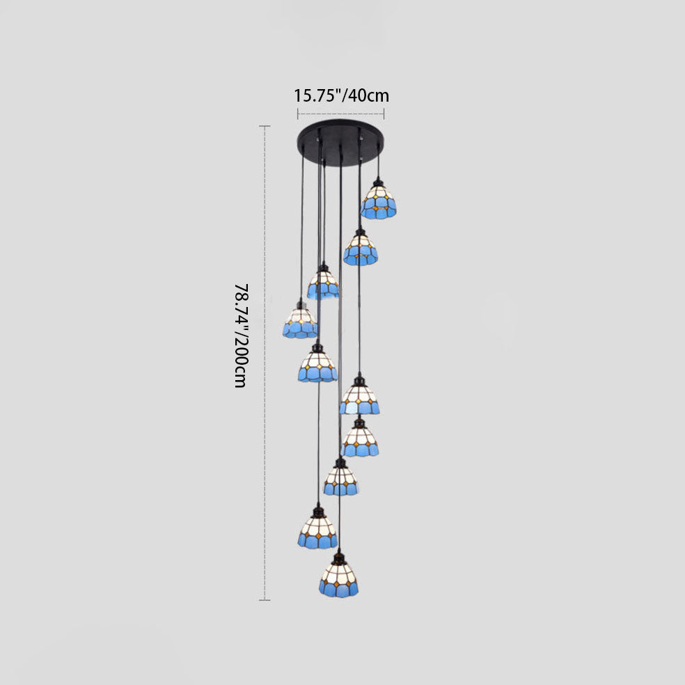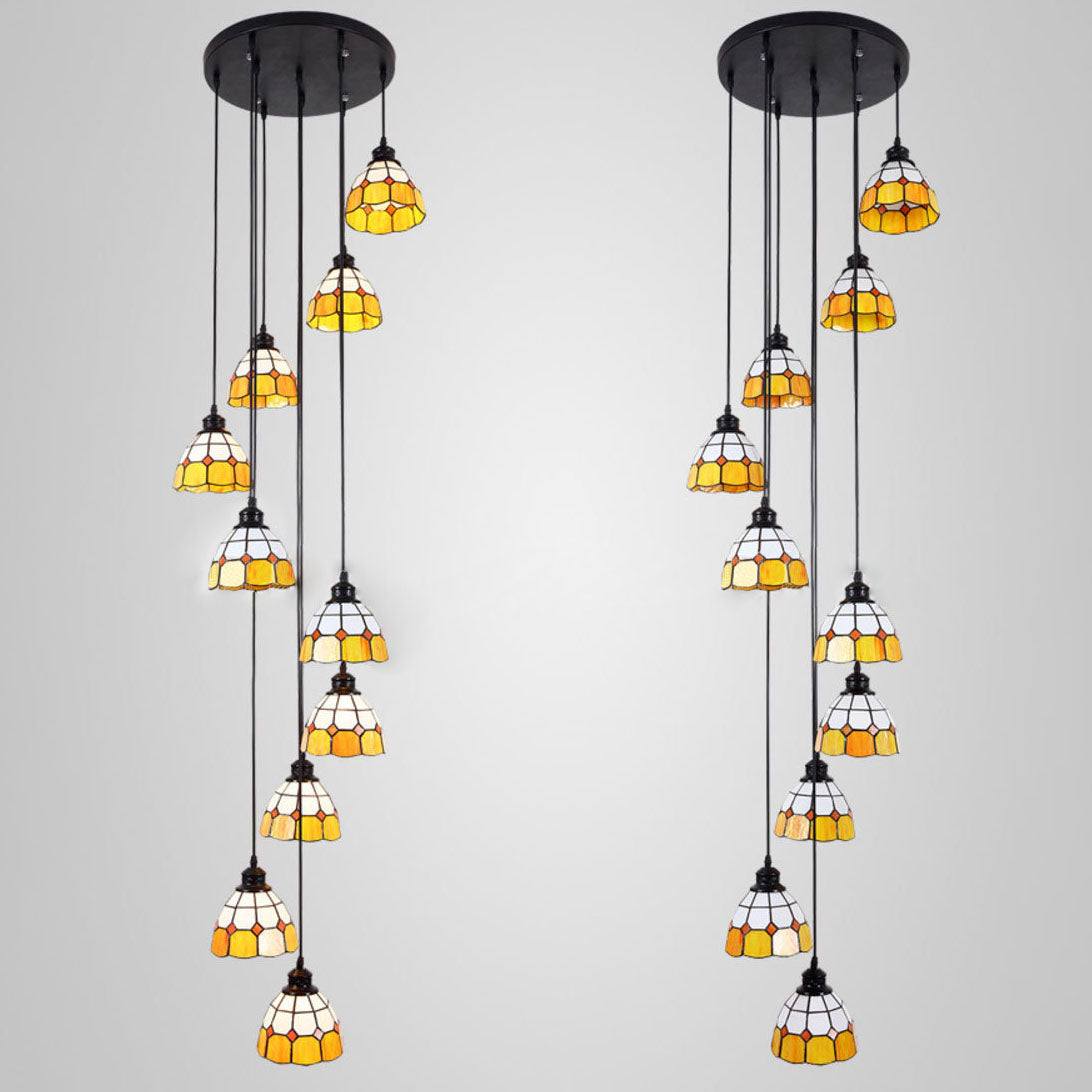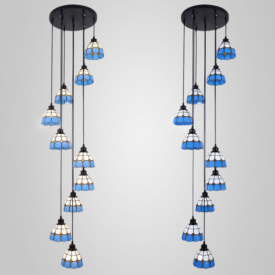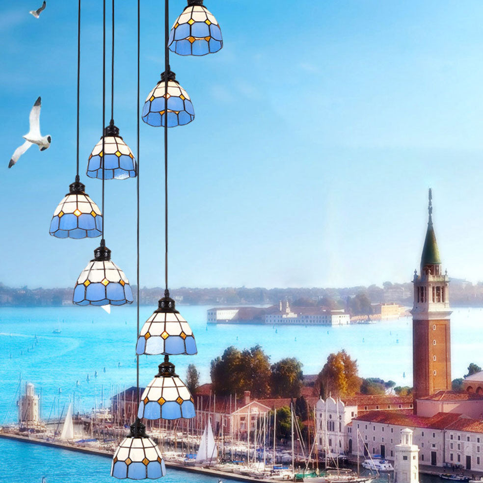 ثريا معاصرة ساحلية من الحديد المدبب والراتنج والزجاج الملون، مكونة من 10 مصابيح لغرفة المعيشة