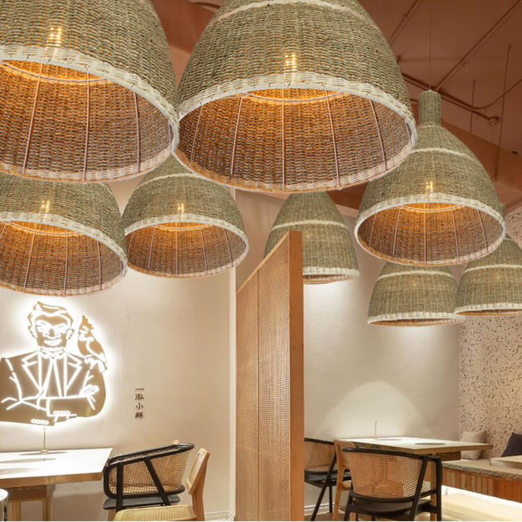 مصباح معلق معاصر على شكل قبة من حبل الجرجير الساحلي، مصنوع من مادة الروطان، لغرفة المعيشة