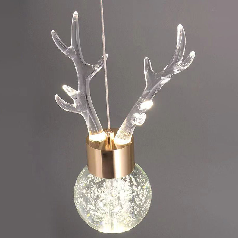 مصباح LED عصري إبداعي على شكل قرن الغزال مصنوع من الأكريليك على شكل كرة بلورية لغرفة المعيشة