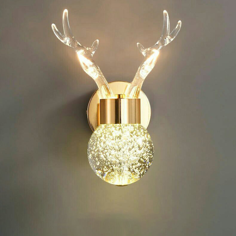 مصباح حائط LED بتصميم عصري إبداعي مصنوع من الأكريليك على شكل قرن الغزال مصنوع من الكريستال لغرفة المعيشة