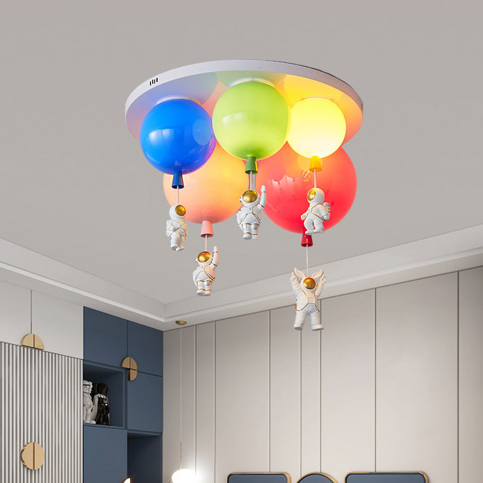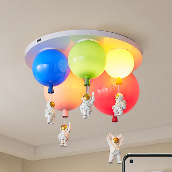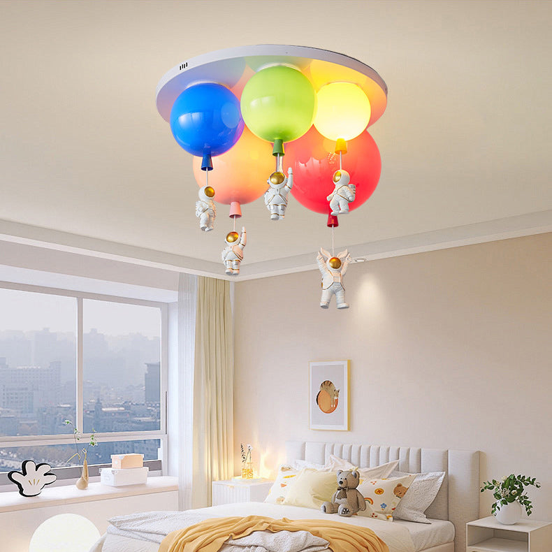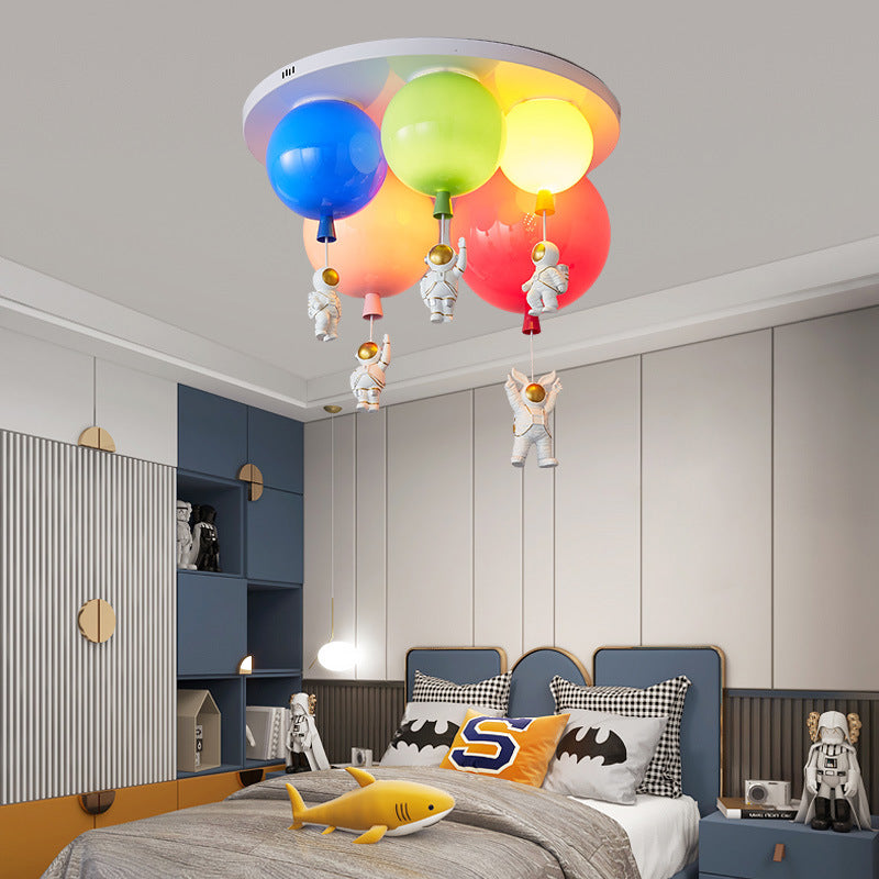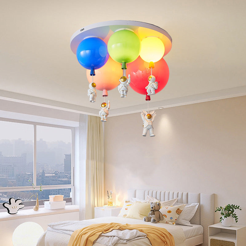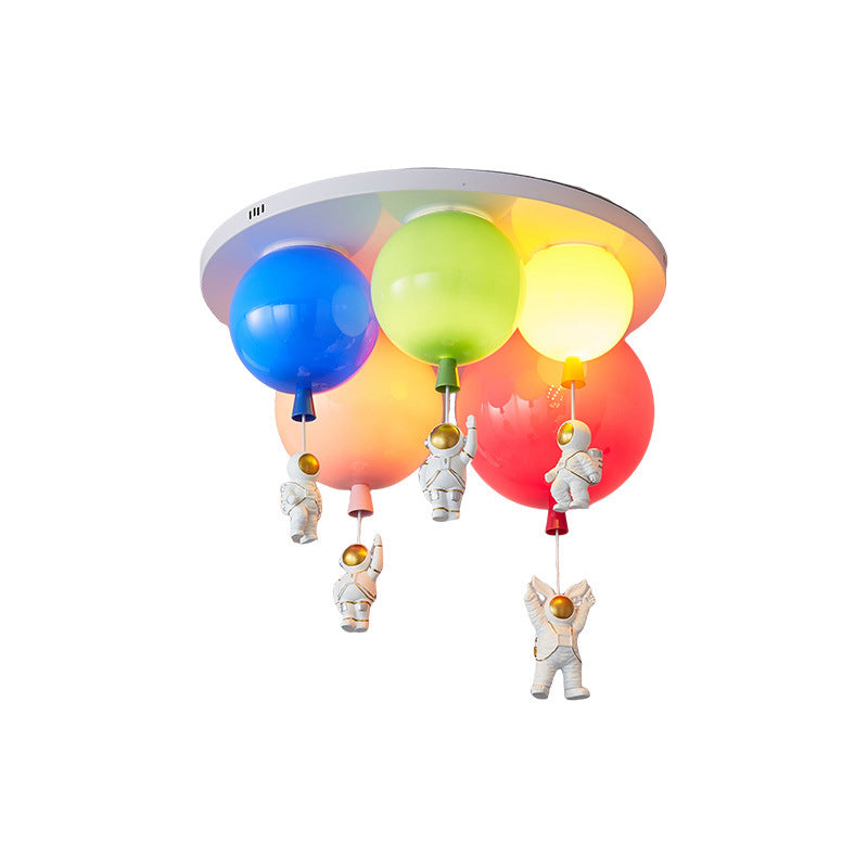 مصباح سقف عصري إبداعي من الأكريليك الملون بتصميم بالون رائد فضاء، مزود بخمسة مصابيح، مناسب لغرفة النوم