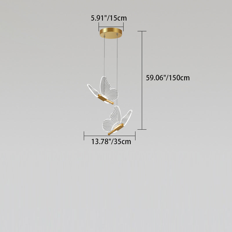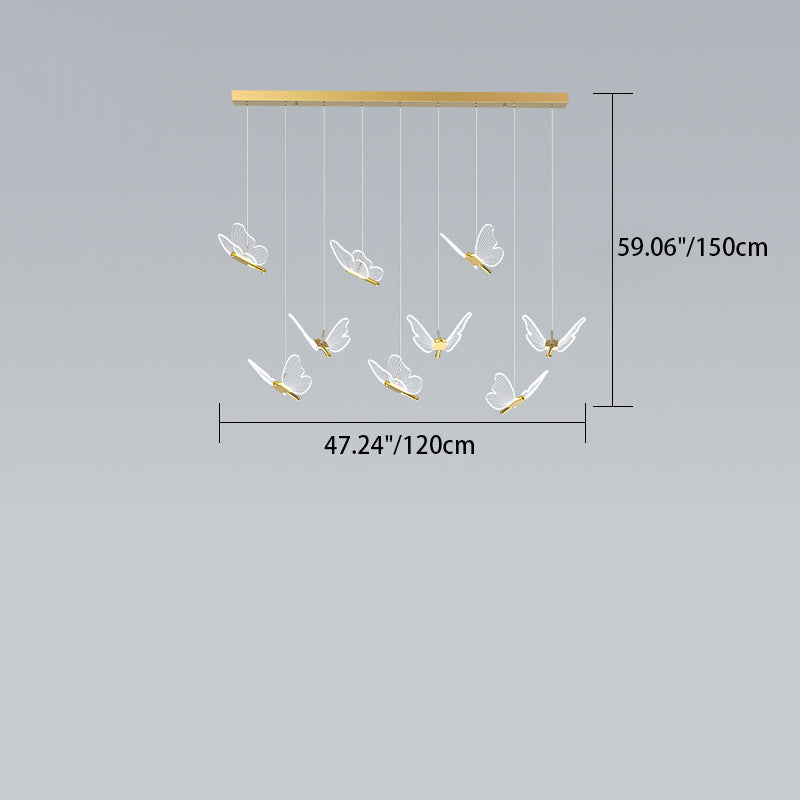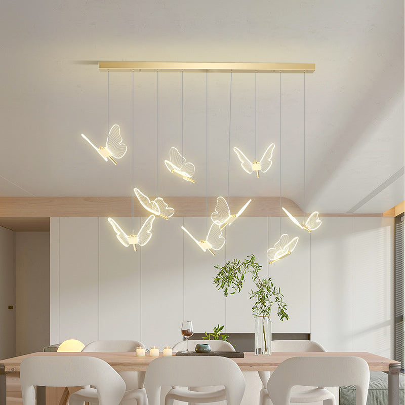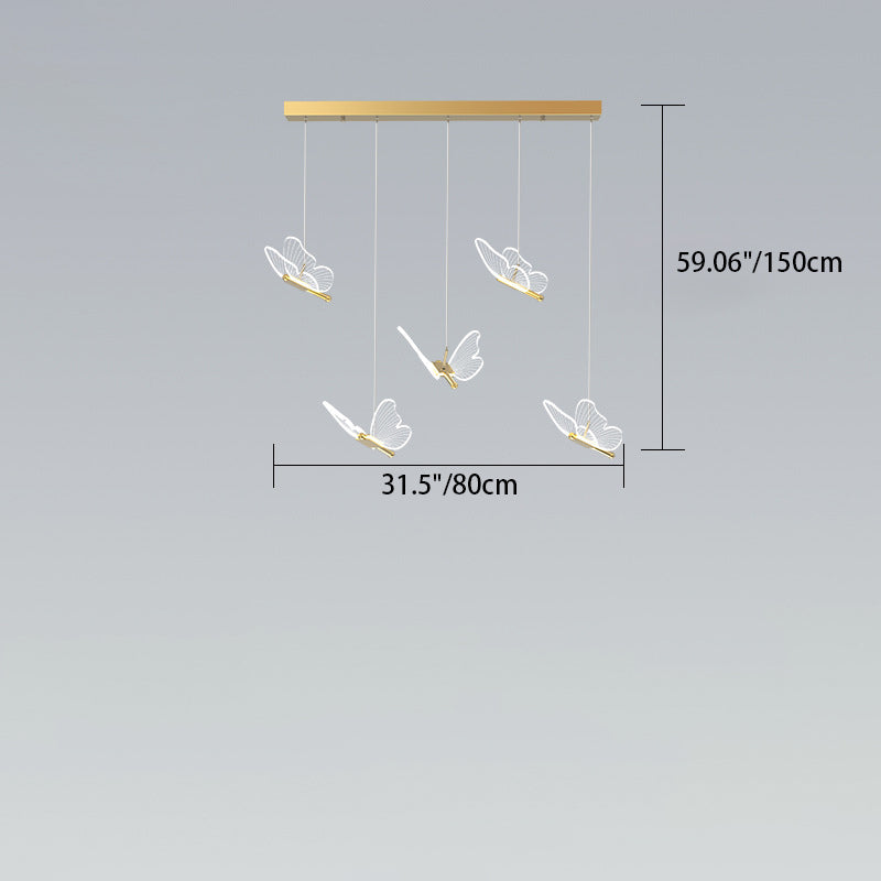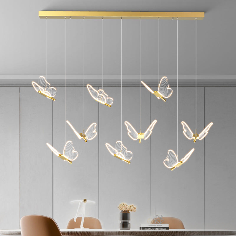 ثريا LED معاصرة مبتكرة قابلة للتعديل الارتفاع على شكل فراشة من الحديد الأكريليك لغرفة الطعام