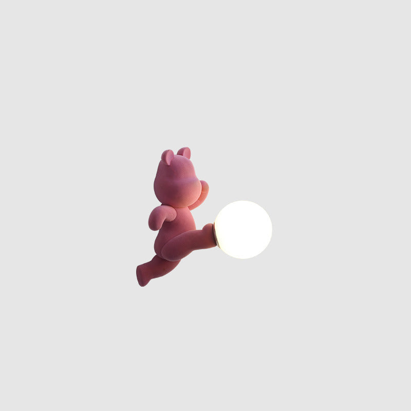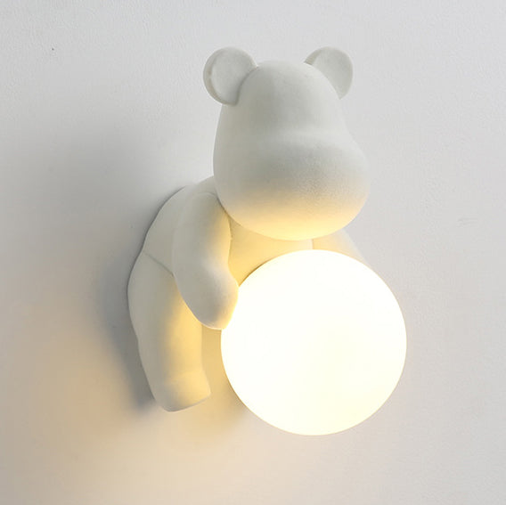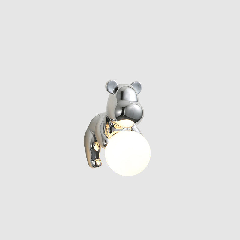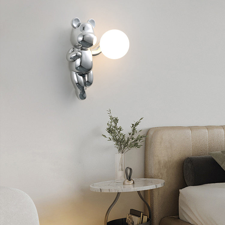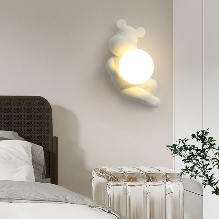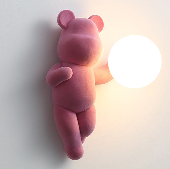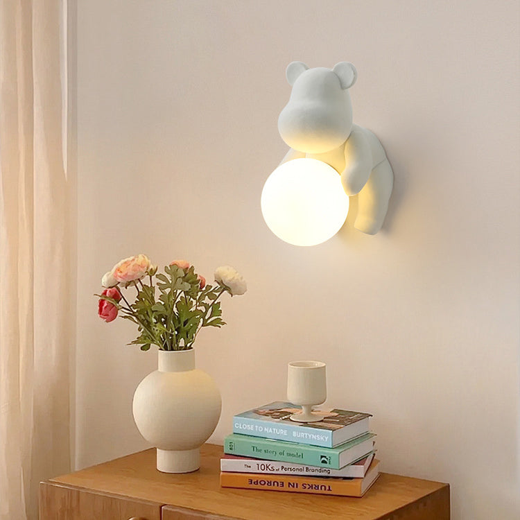 مصباح حائطي عصري إبداعي على شكل كرة دب من الراتنج الزجاجي مزود بإضاءة واحدة لغرفة النوم