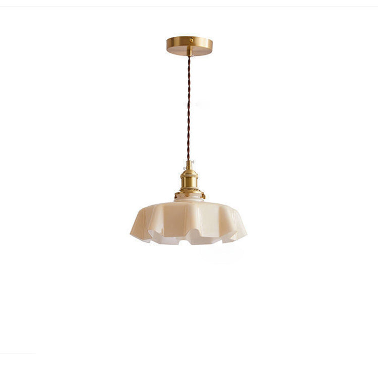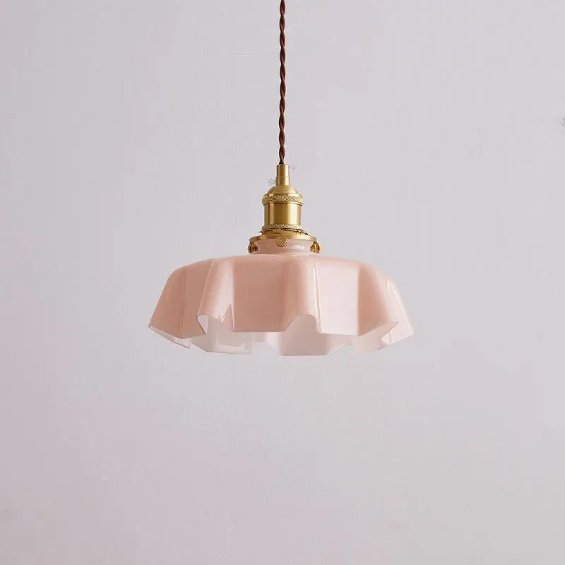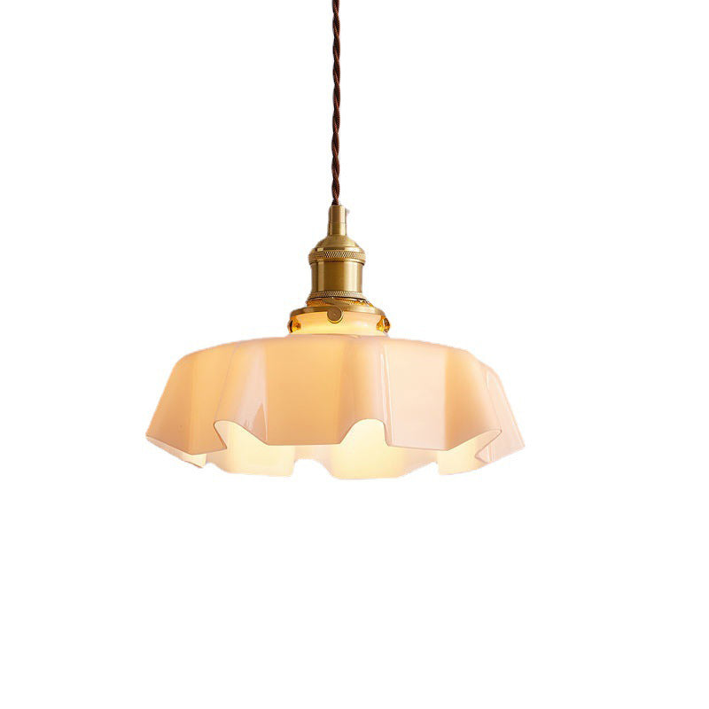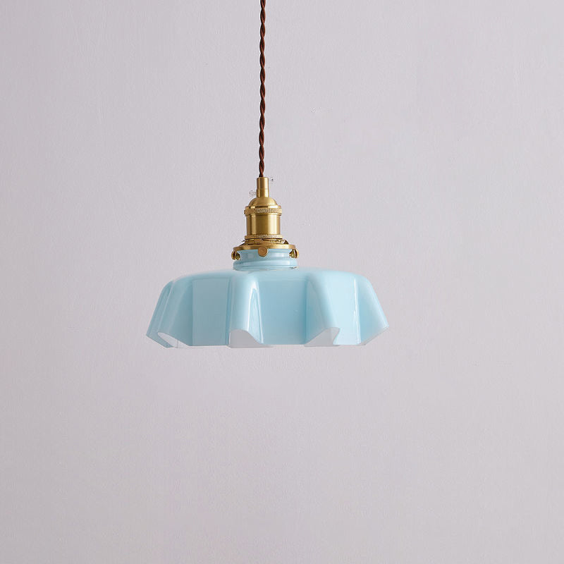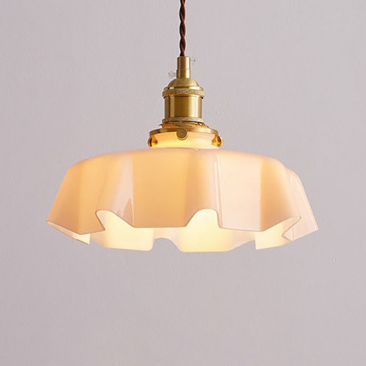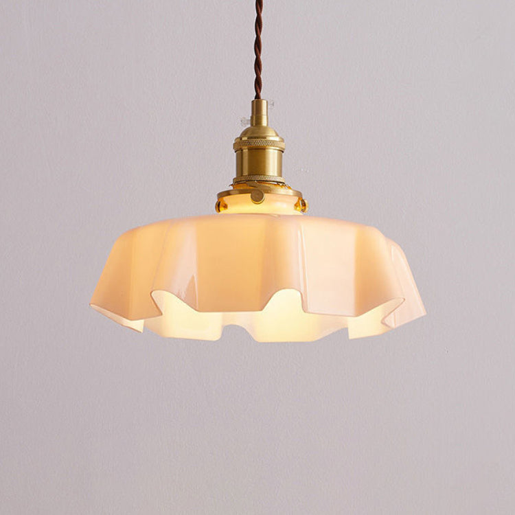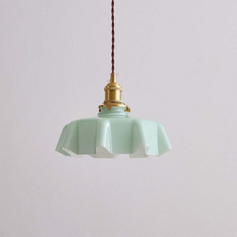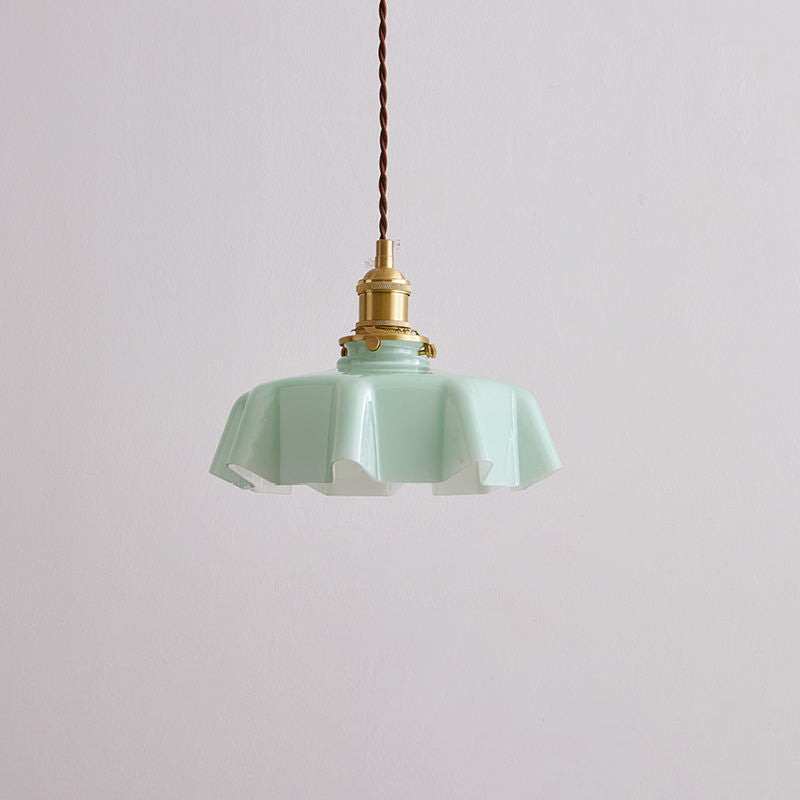 مصباح معلق معاصر إبداعي من النحاس على شكل زهرة زجاجية مزود بمصباح واحد لغرفة المعيشة
