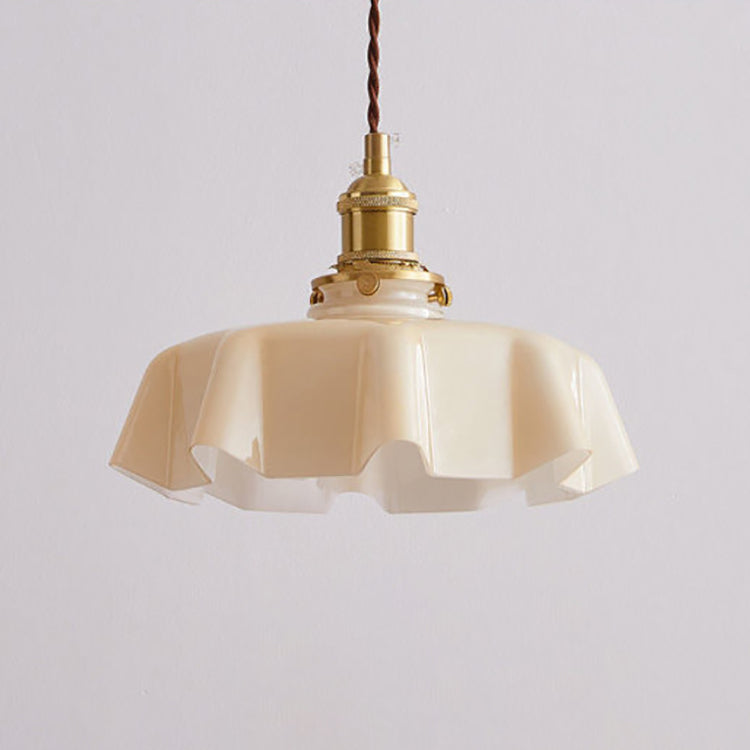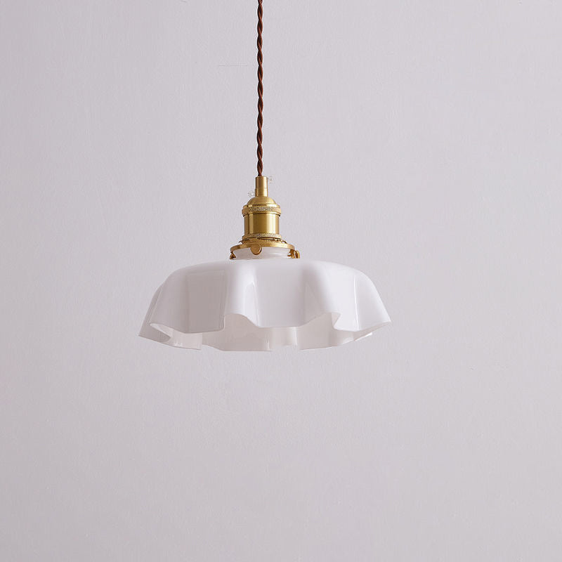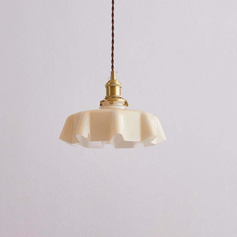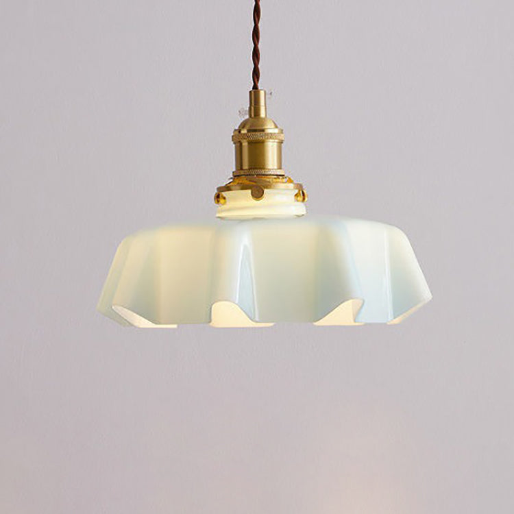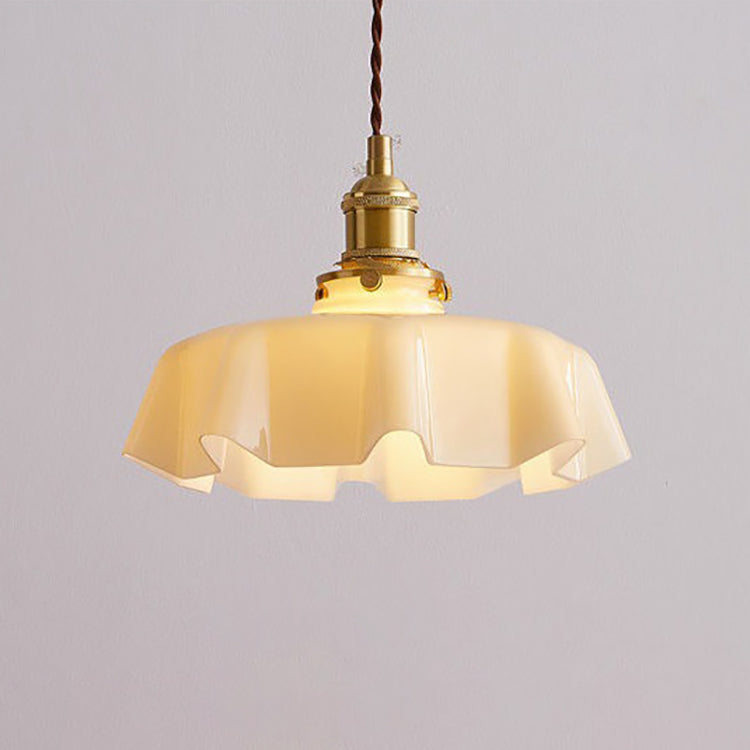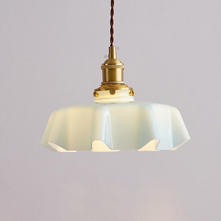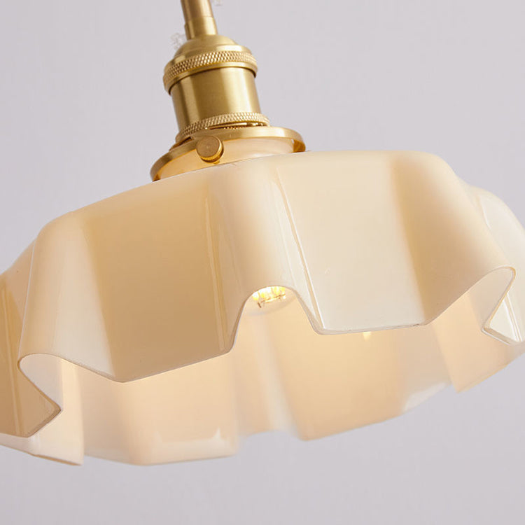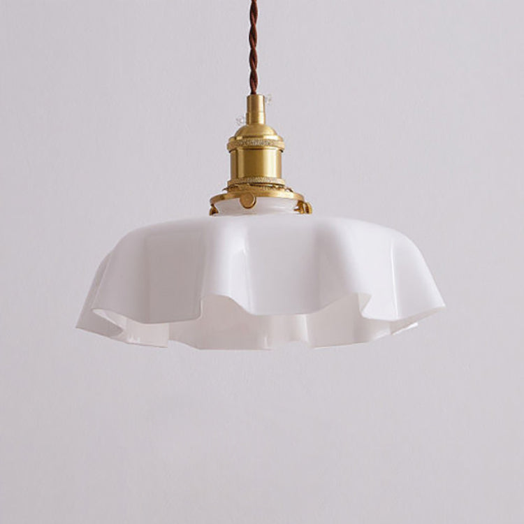 مصباح معلق معاصر إبداعي من النحاس على شكل زهرة زجاجية مزود بمصباح واحد لغرفة المعيشة