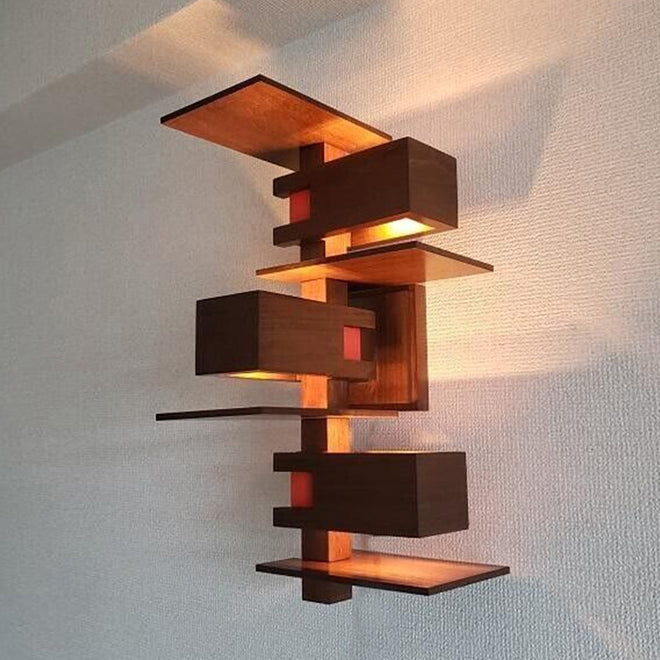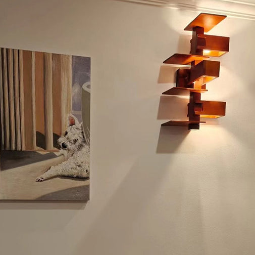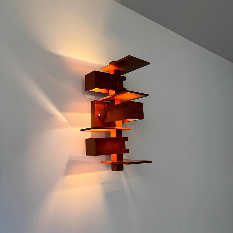 مصباح حائط معاصر إبداعي من خشب الطوب الأحمر بإضاءة 1/3 لغرفة المعيشة