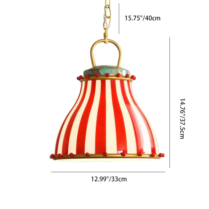 مصباح معلق دائري من الحديد بإضاءة واحدة لغرفة المعيشة بتصميم معاصر إبداعي من الزجاج المخطط باللونين الأحمر والأبيض