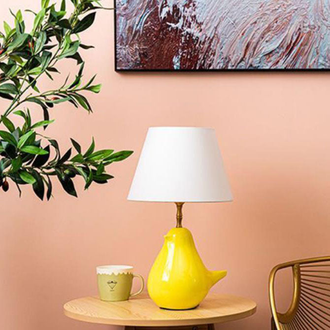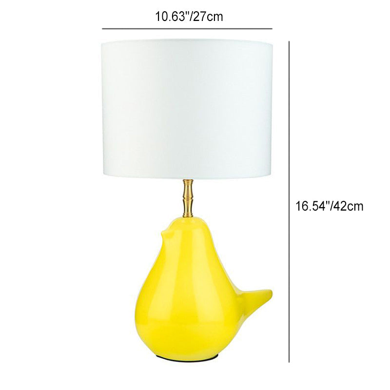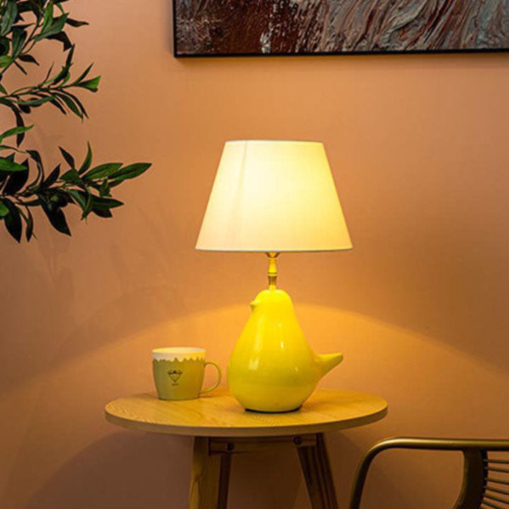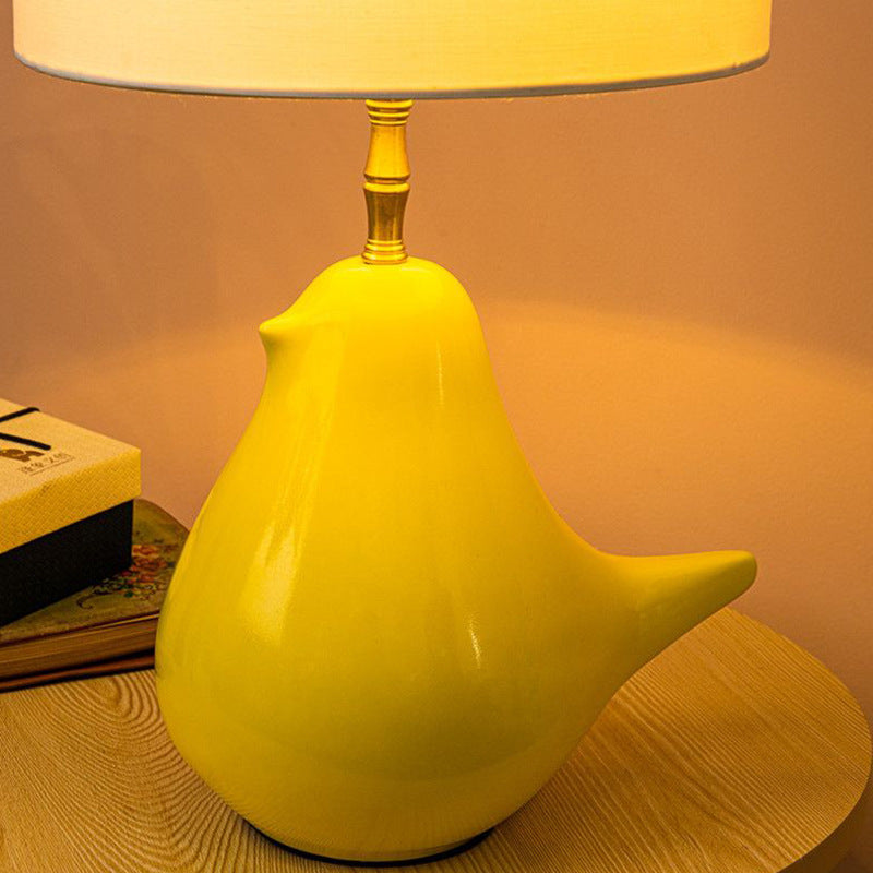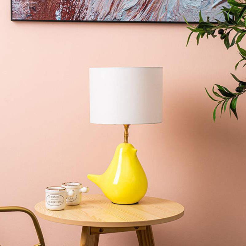 Contemporary Creative Cylindrical Fabric Kettle Ceramic Base 1-Light Table Lamp For Bedroom