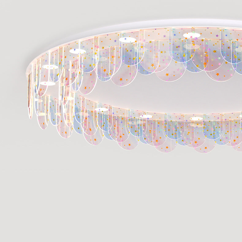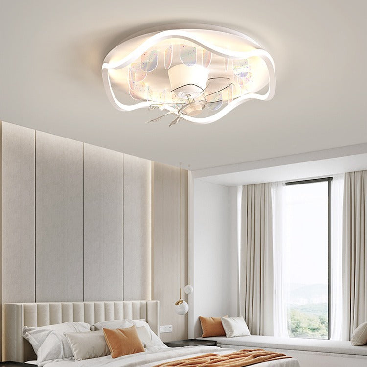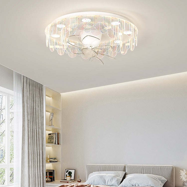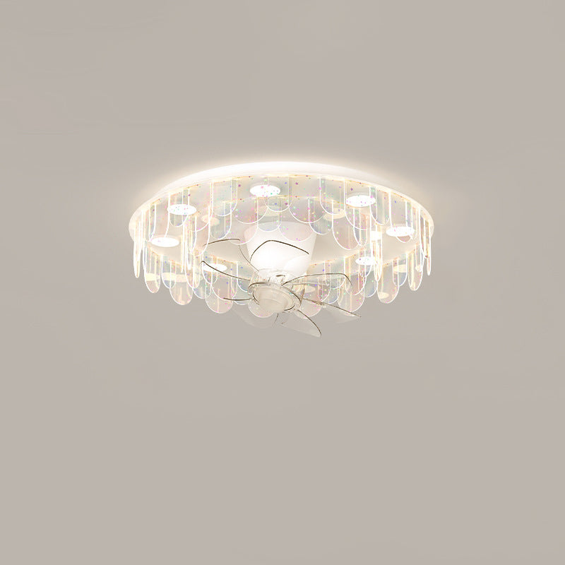 مروحة سقف LED دائرية من الأكريليك مصنوعة من الحديد بتصميم معاصر إبداعي لغرفة المعيشة