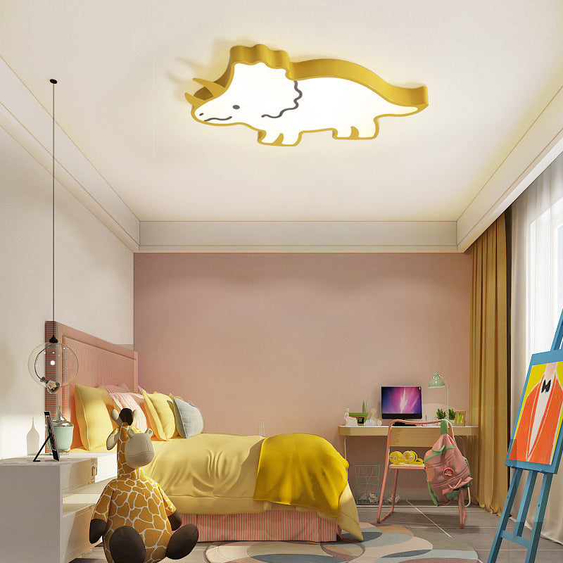 مصباح سقف LED مدمج بتصميم عصري ومبتكر للأطفال على شكل وحيد القرن مصنوع من الحديد والأكريليك لغرفة النوم
