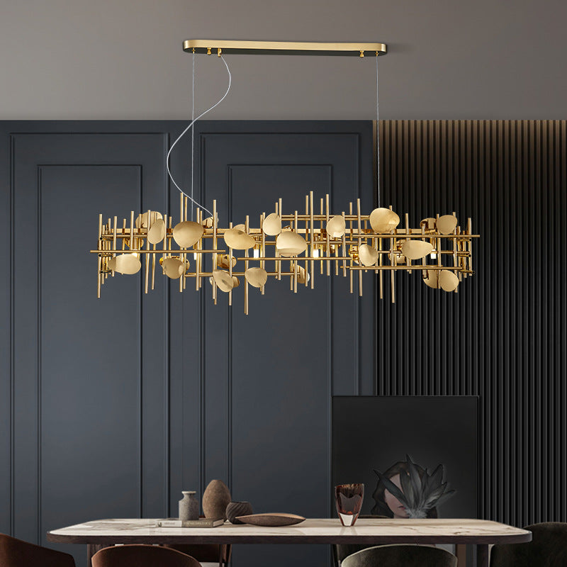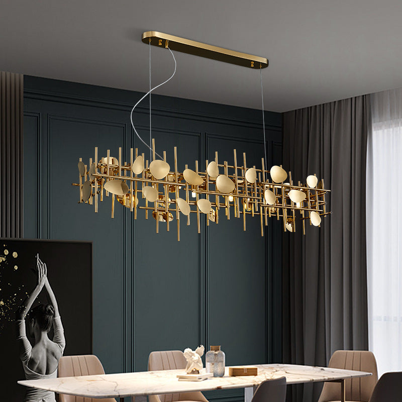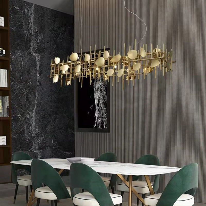 ثريا معاصرة بتصميم أوراق الشجر الإبداعية من الفولاذ المقاوم للصدأ، بخمسة مصابيح، لغرفة المعيشة