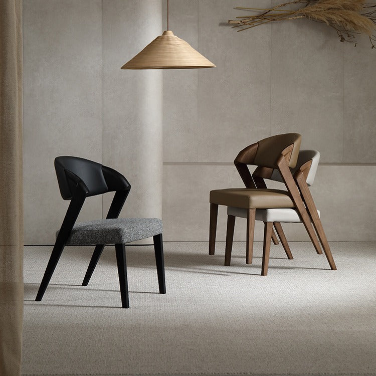 Contemporary Creative Microfiber Leather Linen Ash Wood Square Semi-Round Dining Chair Scientific Backrest For Living Room & Dining Room