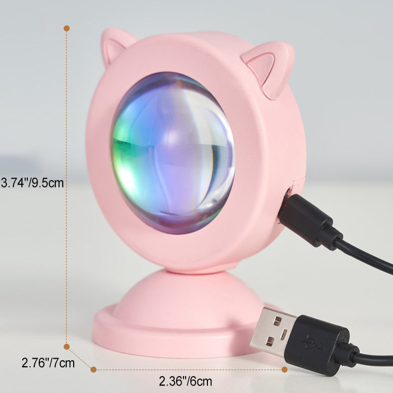 Contemporary Creative Pink Cat Ear Shape ABS USB LED Ambient Light Table Lamp For Bedroom