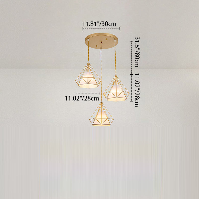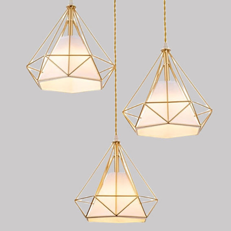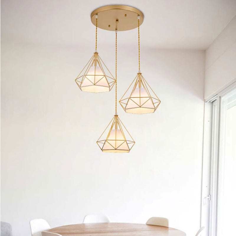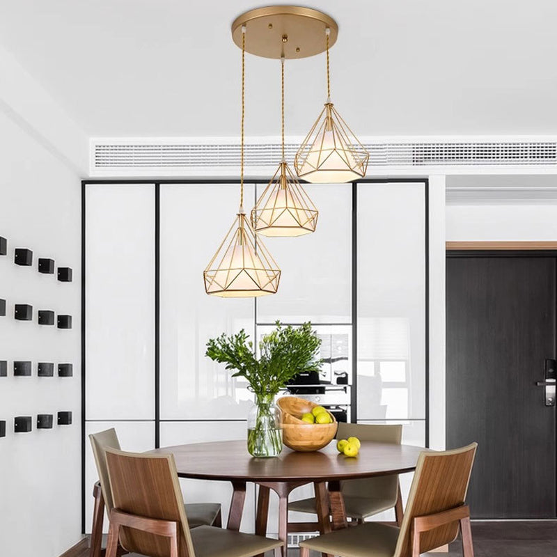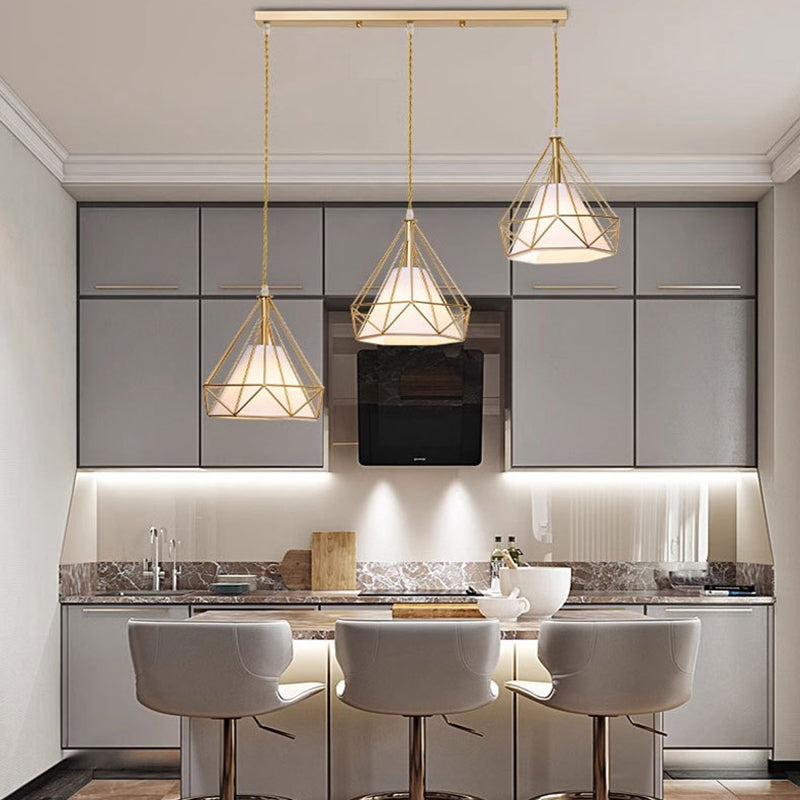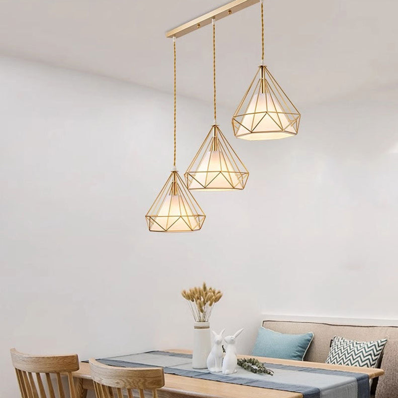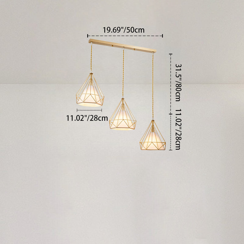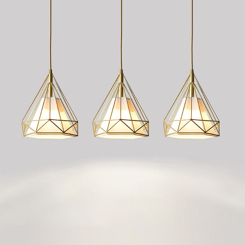 ثريا جزيرة معاصرة إبداعية على شكل مخروط هرمي من الحديد بثلاثة مصابيح لغرفة الطعام