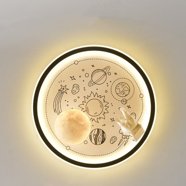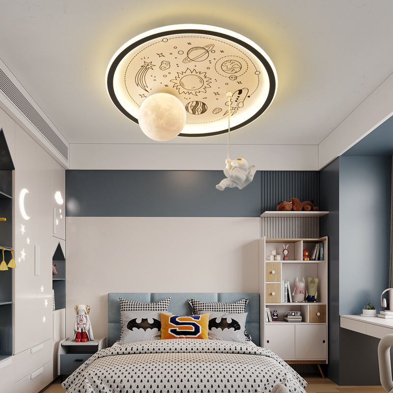 مصباح سقف LED عصري إبداعي من الراتينج على شكل كوكب رائد فضاء من الحديد والأكريليك لغرفة المعيشة