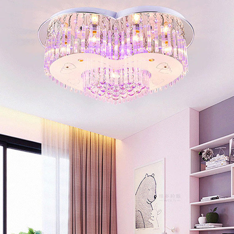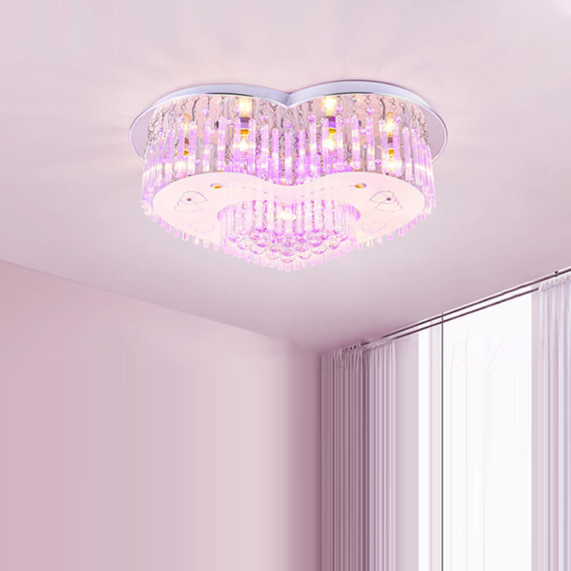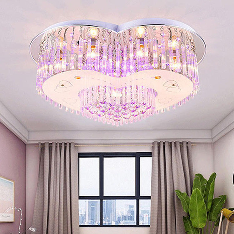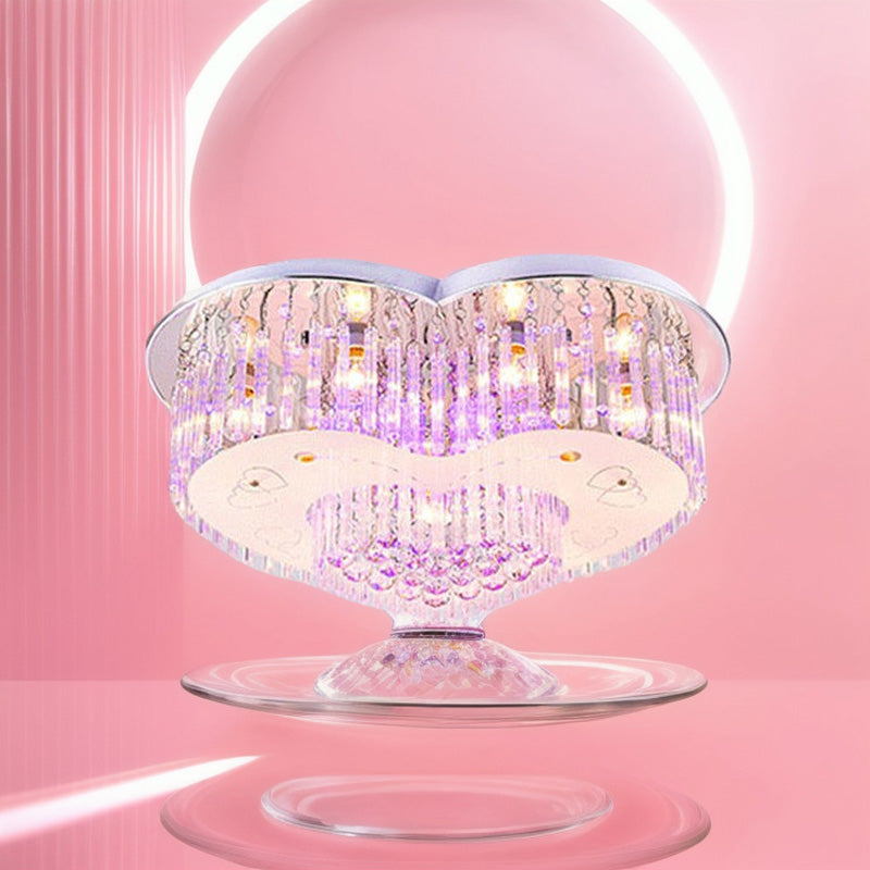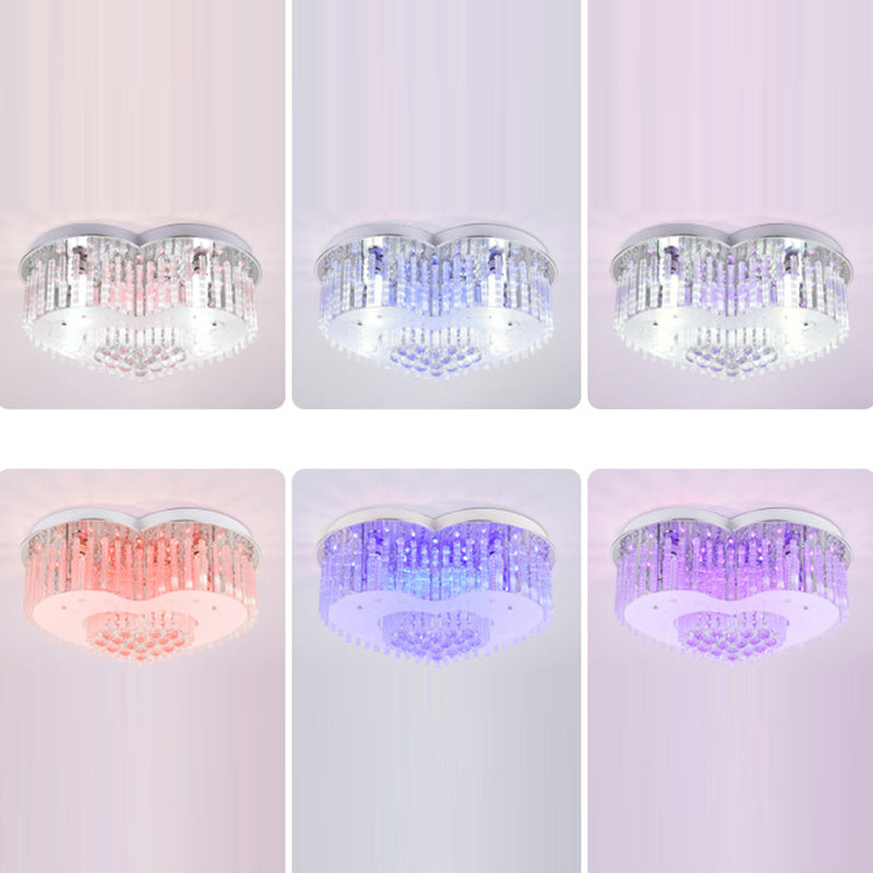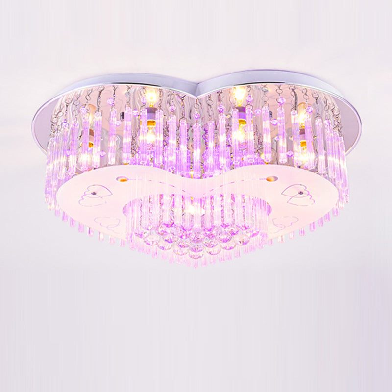 مصباح سقف عصري إبداعي على شكل قلب من الكريستال والزجاج، مزود بسبعة مصابيح، مثبت بشكل نصف مسطح، لغرفة المعيشة