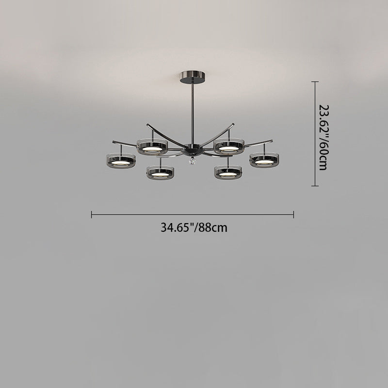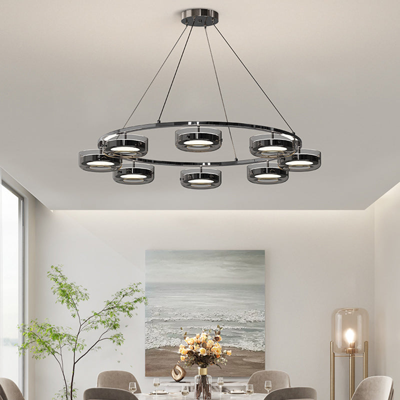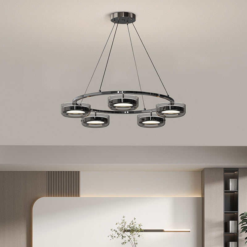 ثريا دائرية معاصرة إبداعية مصنوعة من الحديد والألومنيوم والزجاج والأكريليك LED لغرفة النوم