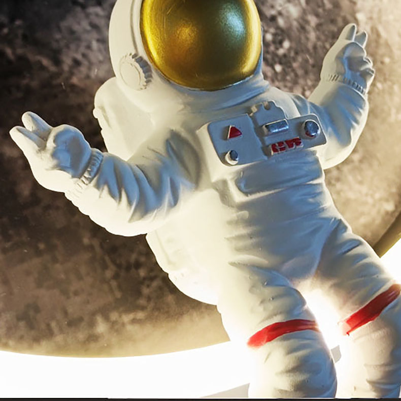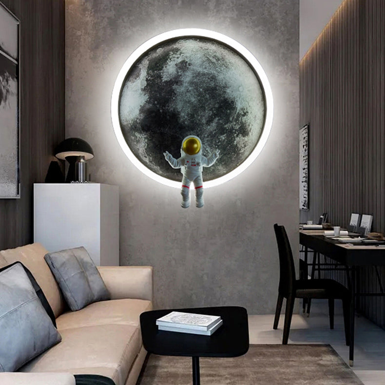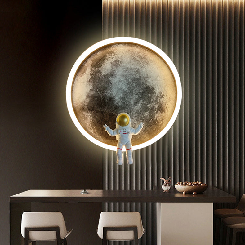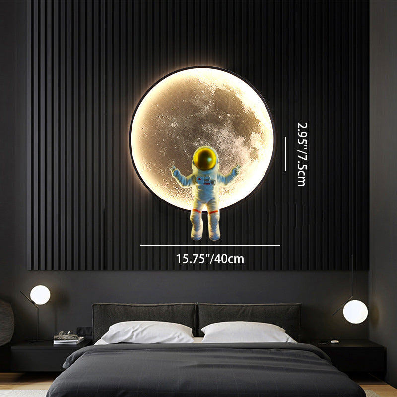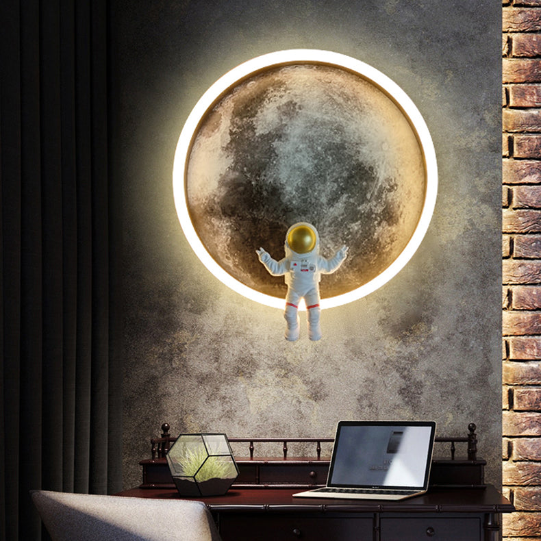 مصباح حائط LED دائري إبداعي معاصر على شكل رائد فضاء قمري مصنوع من الراتنج لغرفة النوم