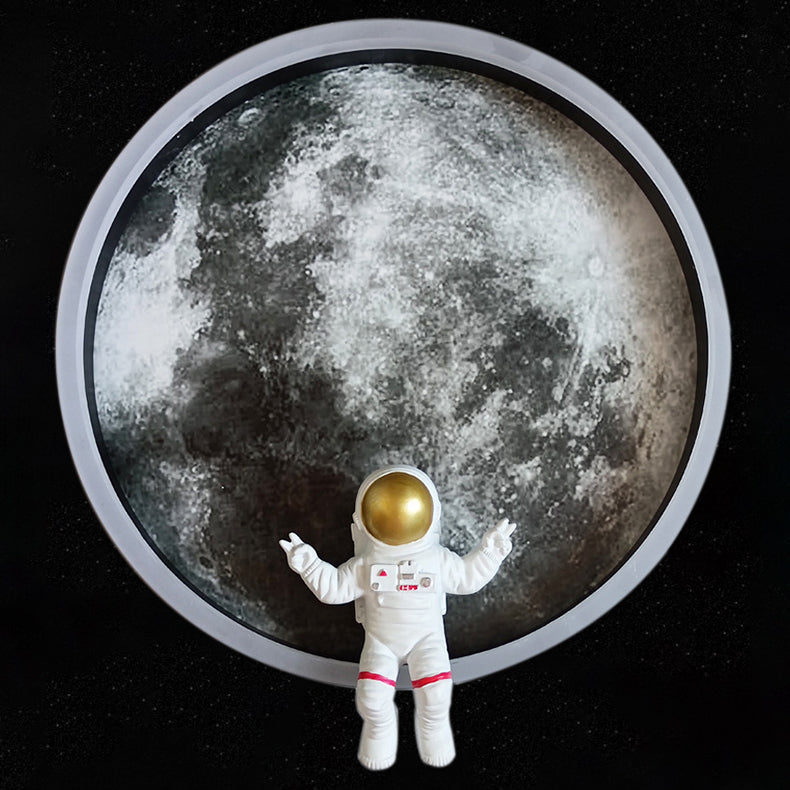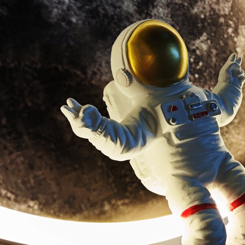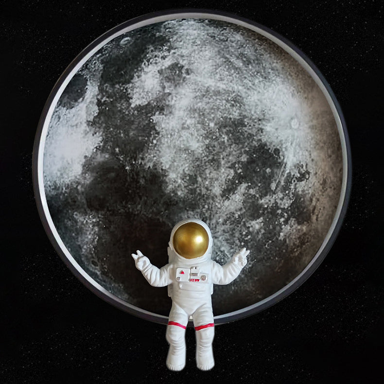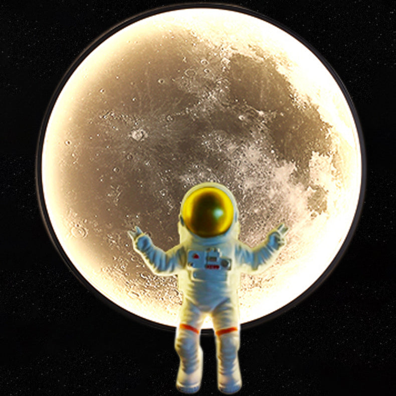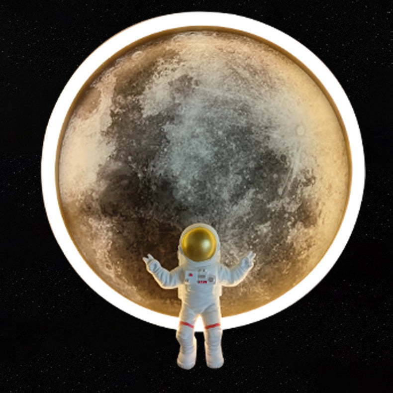 مصباح حائط LED دائري إبداعي معاصر على شكل رائد فضاء قمري مصنوع من الراتنج لغرفة النوم
